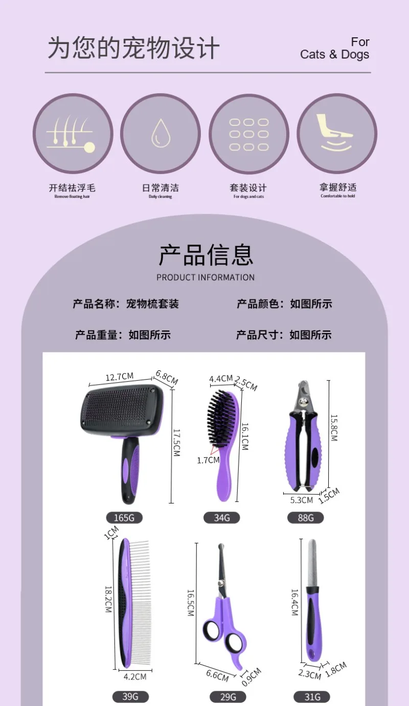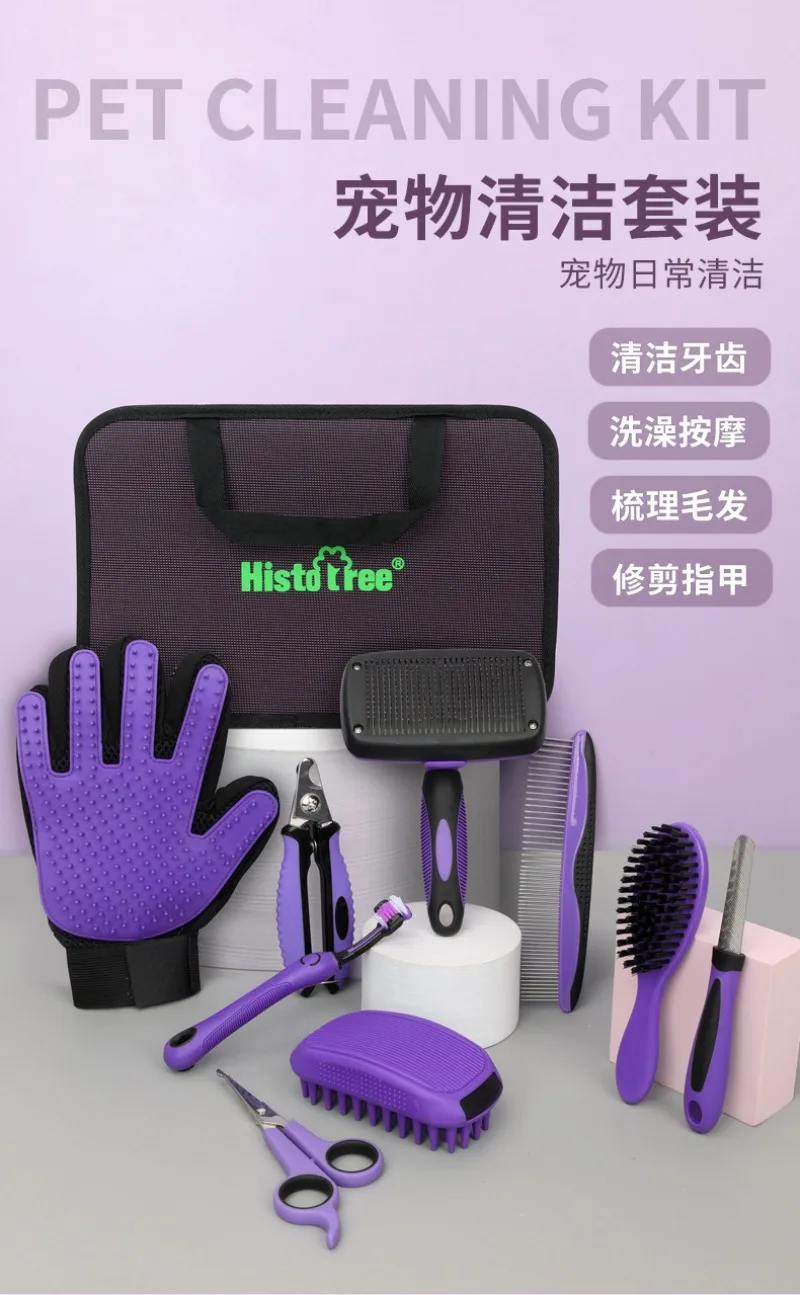 Peine para mascotas, limpieza de belleza, juego de 9 piezas, tijeras para perros y gatos, peines de aguja, cortaúñas, peines, guantes, suministros de limpieza para mascotas, accesorios