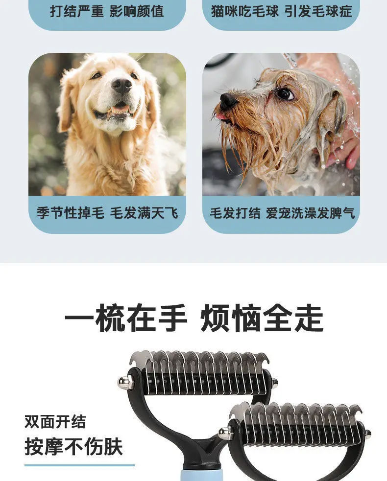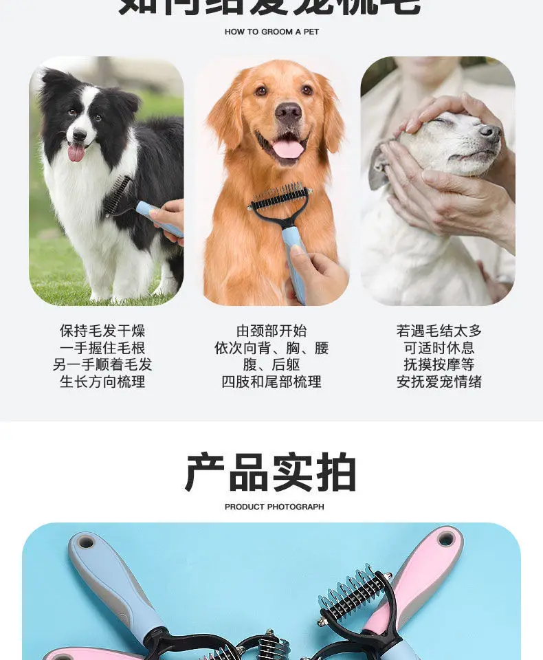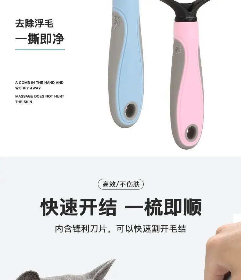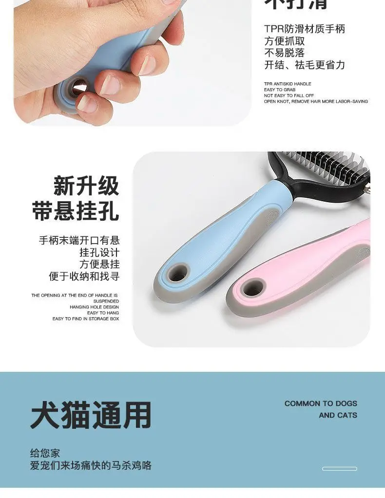 Peine de nudo abierto para mascotas, peine para depilación de perros, suministros de belleza para mascotas