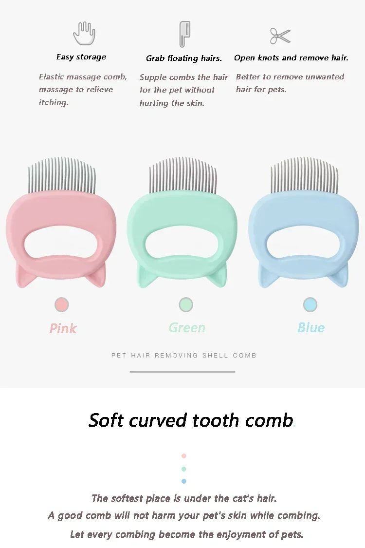 Cepillo de masaje para mascotas, mango en forma de concha, herramienta de masaje para el cuidado de mascotas para eliminar pelos sueltos solo para gatos