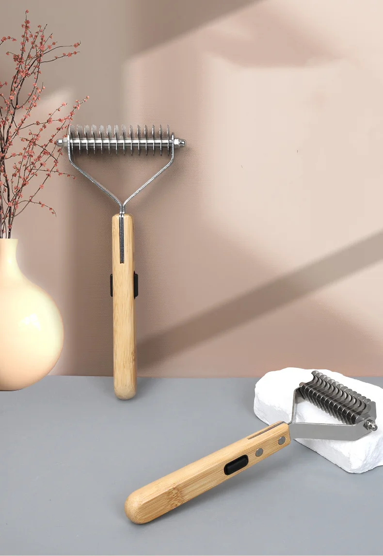 Peine para perros, cepillo de acero inoxidable para perros, peines con mango de madera maciza para perros, nudo de pelo, removedor de pelo para mascotas, peine de masaje para el cuidado de mascotas