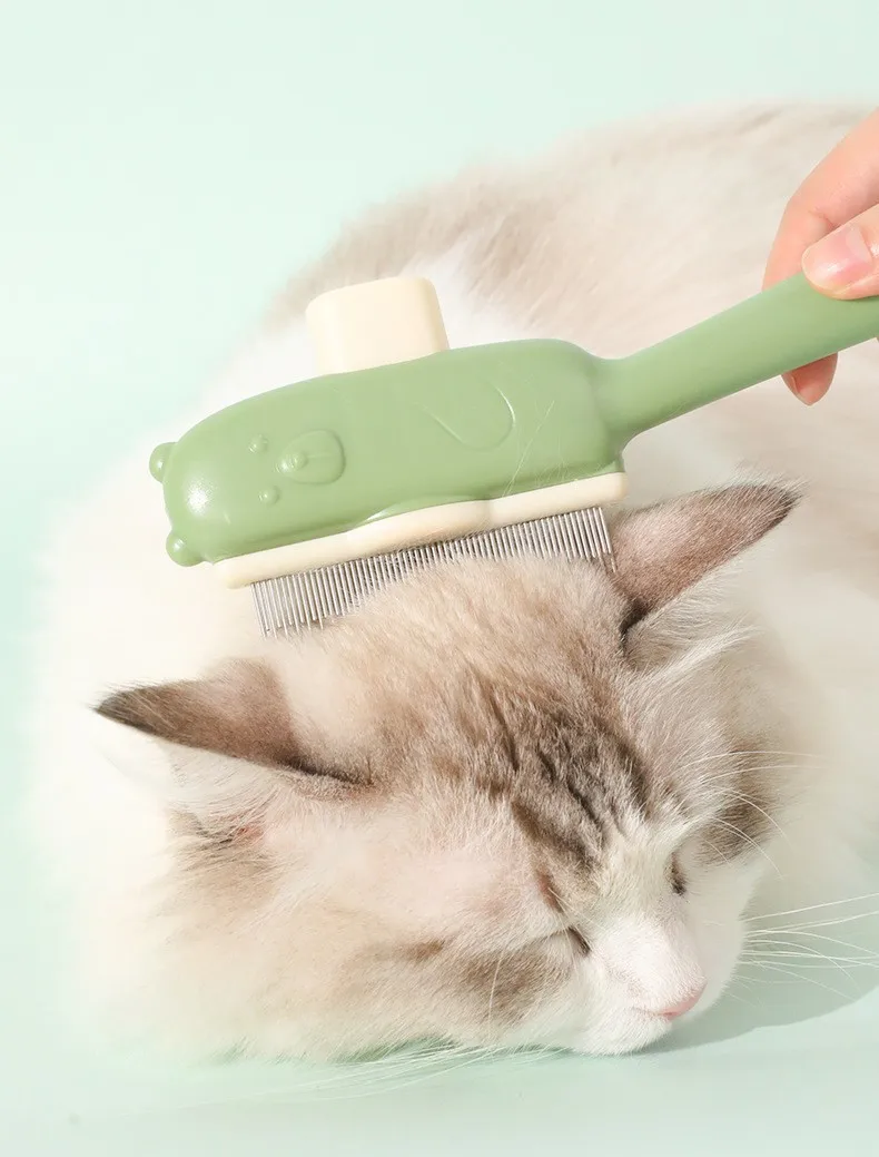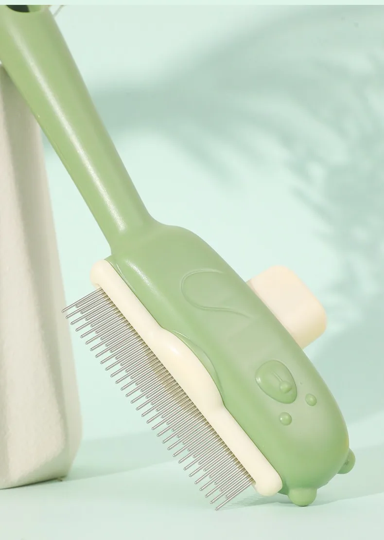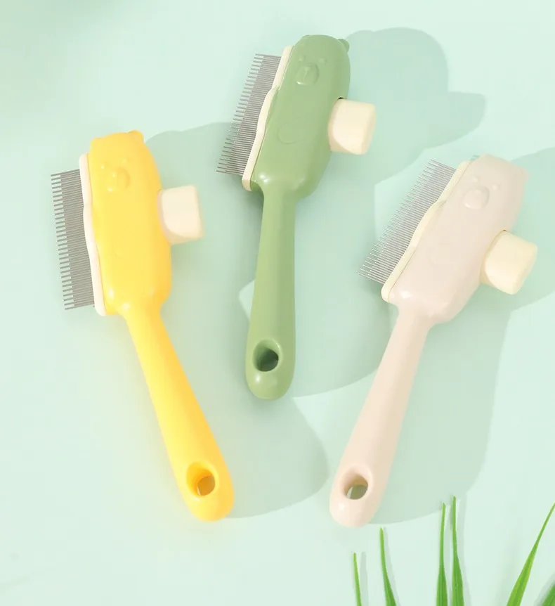 Peine para perros, cepillo automático para perros, removedor de pelo de dientes densos para mascotas, cepillo autolimpiante para gatos, peines con mango cómodo para el cuidado de perros