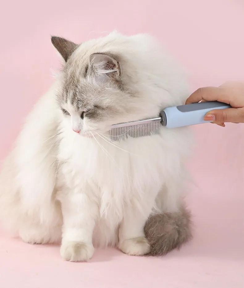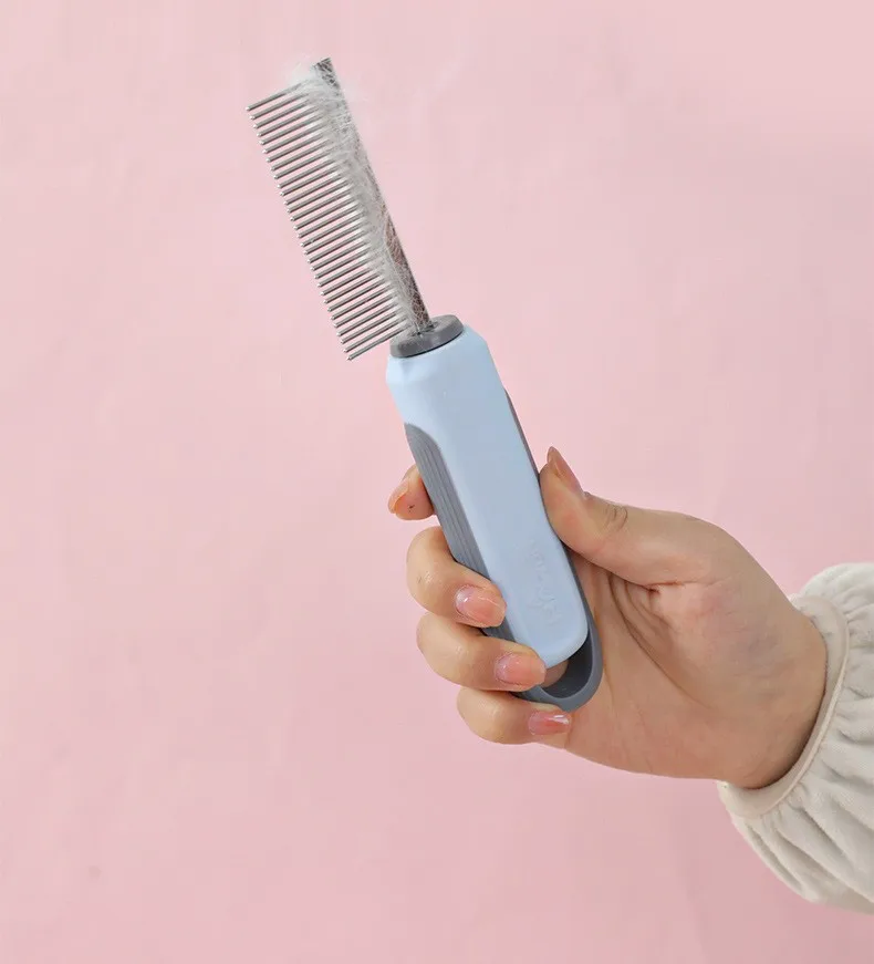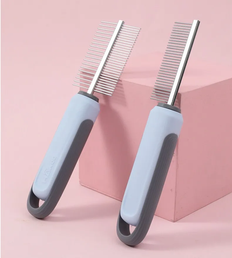 Peine para perros, cepillo de doble cara para perros, cepillo autolimpiante para gatos, removedor de pelo para mascotas, peines de acero inoxidable para cepillos de masaje para el cuidado de perros