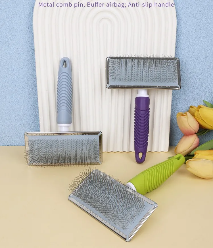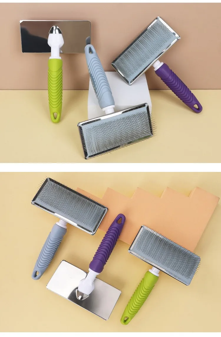 Peine para perros, cepillo de masaje para perros, peine para gatos de dientes largos, removedor de pelo para mascotas, cepillo de cuidado para perros, peines de acero inoxidable para Limpieza del cabello de perros