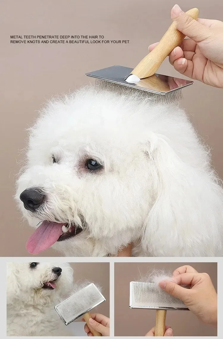 Peine para perros, cepillo para perros de madera maciza, removedor de pelo para mascotas, cepillo de masaje para gatos, peines de acero inoxidable para el cuidado de mascotas, apertura de nudos de pelo para gatos