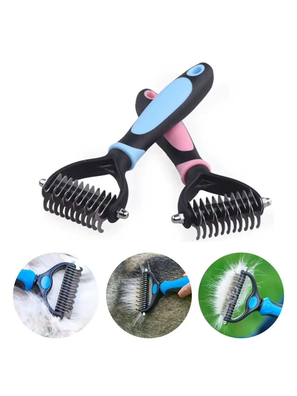 Peine para perros y gatos, cortador de nudos de piel para mascotas, herramientas de aseo, cepillo removedor de pelo, cepillo de peluquería de doble cara para mascotas