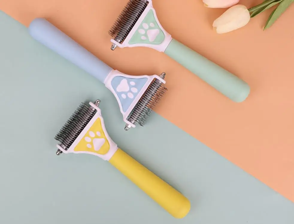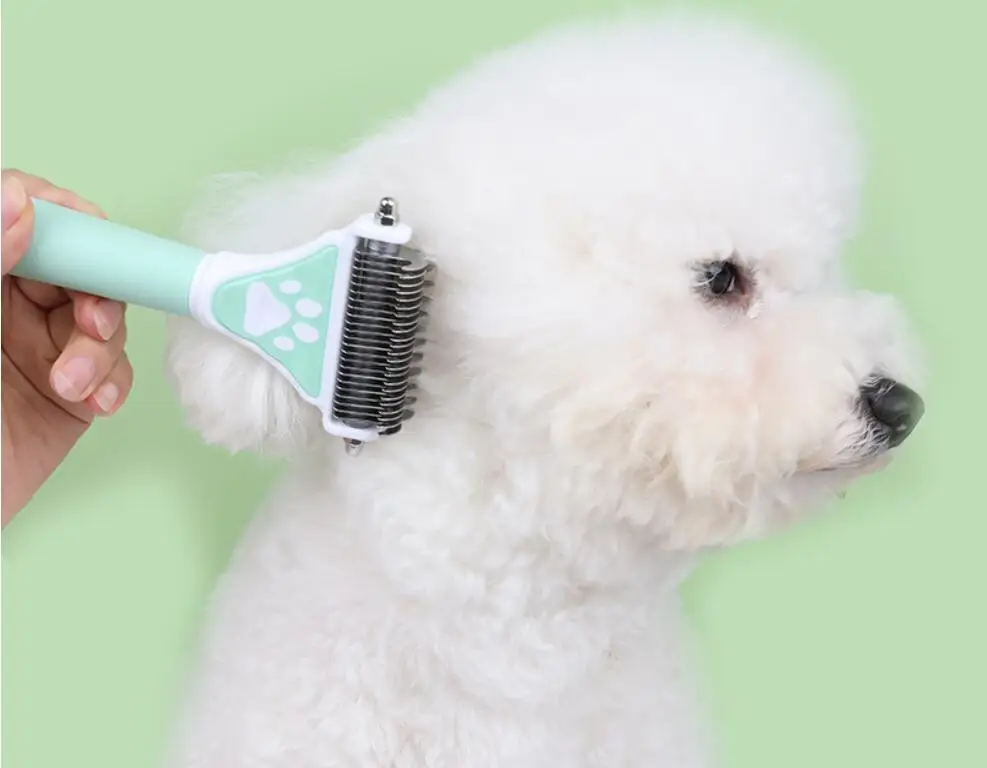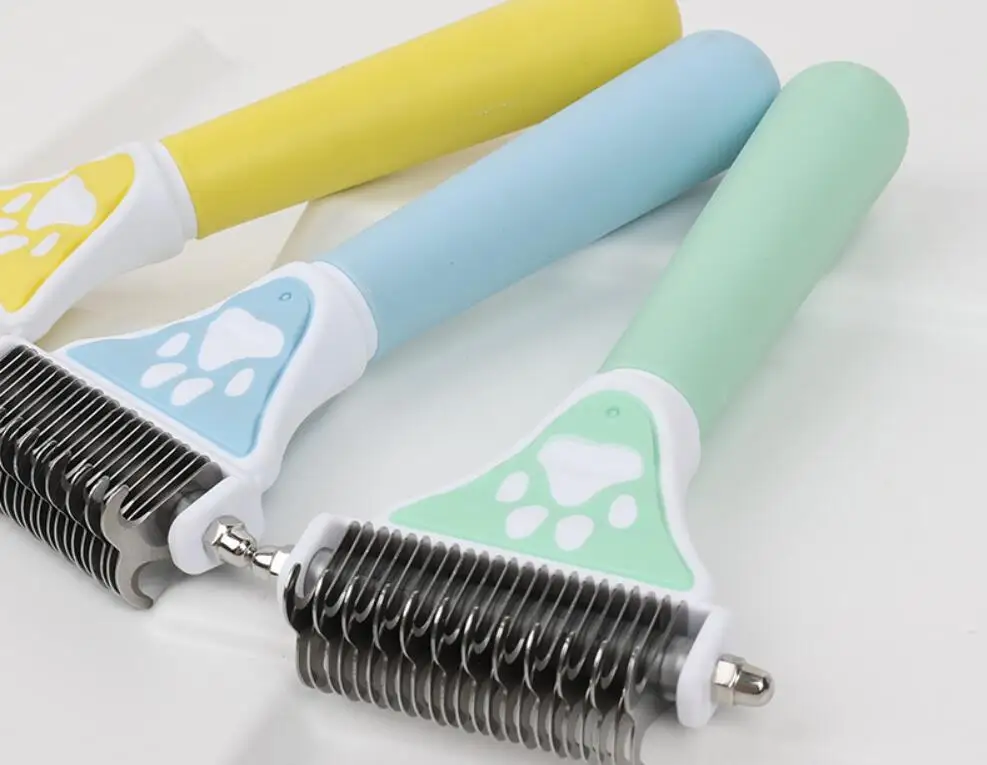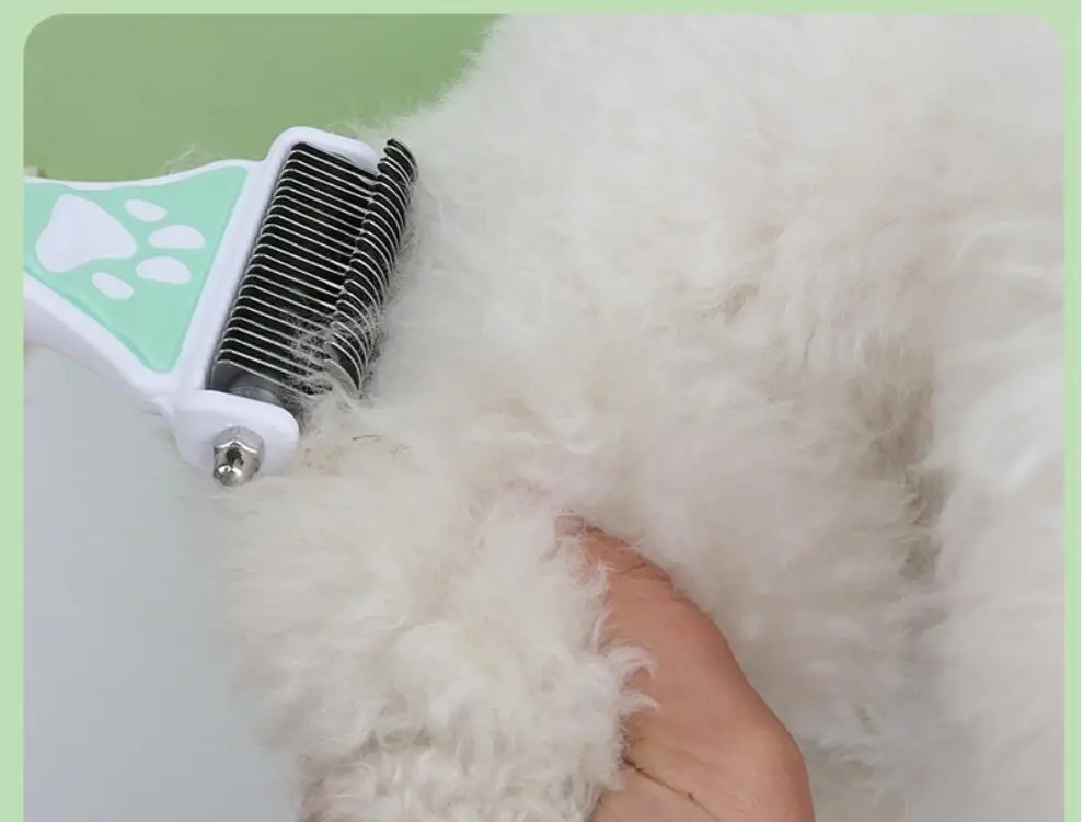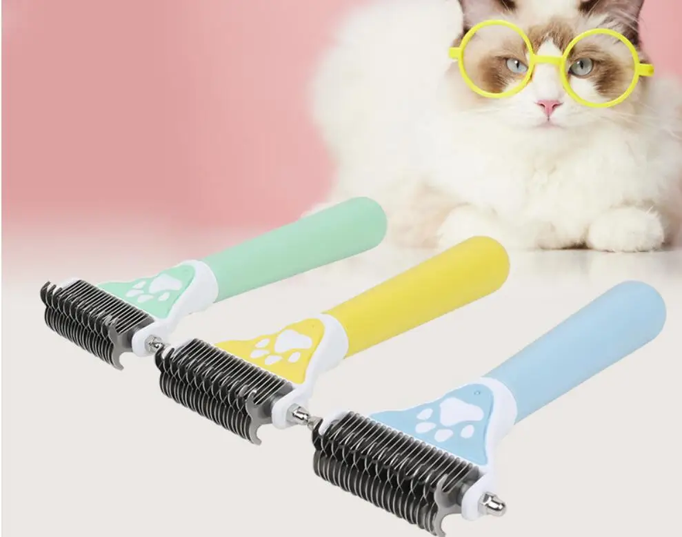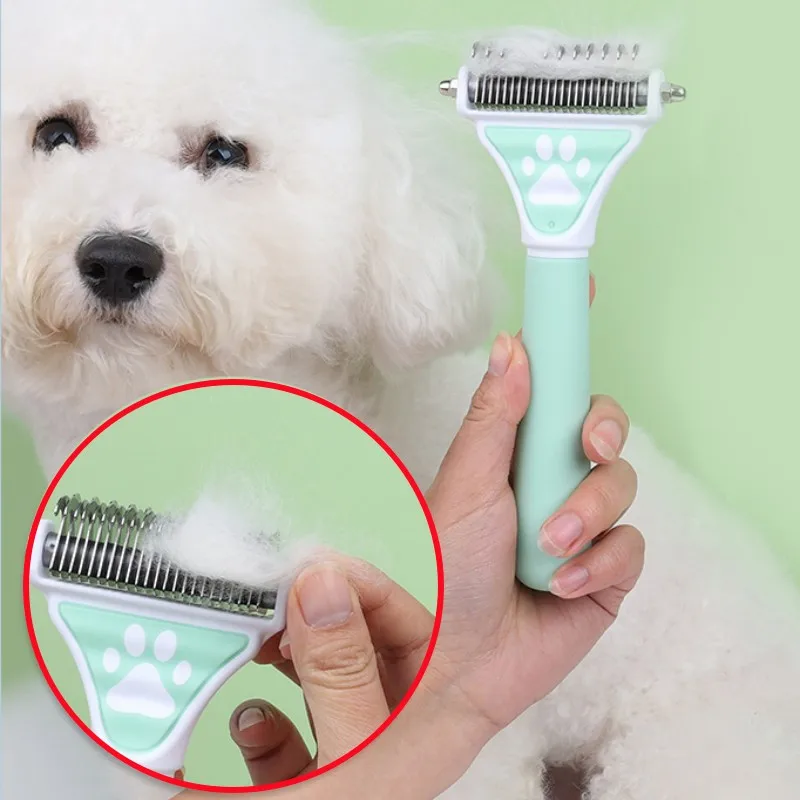 Peine para perros con nudo de doble cara, cortador de pelo, cepillo para perros, removedor de pelo para mascotas, cuchillo de nudo de acero inoxidable, productos de aseo para mascotas