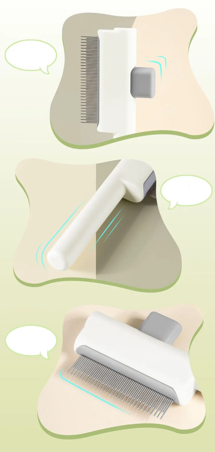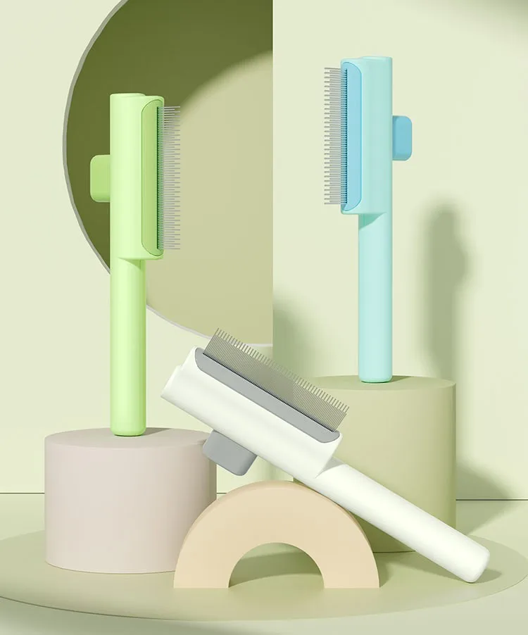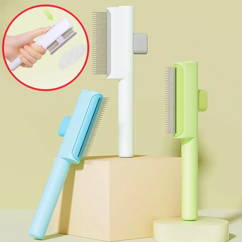Peine para perros, removedor de pelo para mascotas, peine para perros con un solo clic, cepillo para gatos autolimpiante, cepillo de masaje para el cuidado de perros, peines para perros limpios con nudos