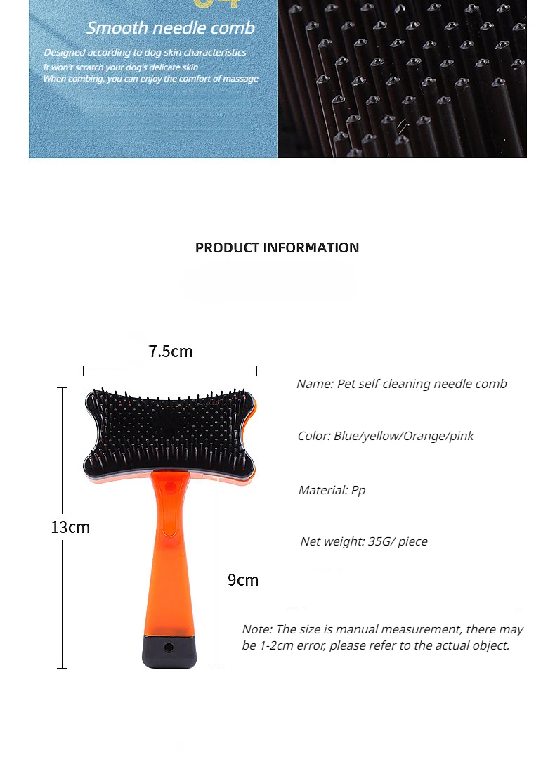 Cuando las mascotas cambian su pelo durante el cambio de temporada, acumulan pelo en sus cuerpos, lo que trae muchos problemas a las mascotas y la higiene del hogar. Este producto utiliza un diseño de Peine de masaje, que también puede masajear a las mascotas mientras se peina. Resuelve el problema del pelo en las mascotas y también resuelve los problemas de salud en el hogar. ¡También puedes hacer un cepillo de baño para mascotas!