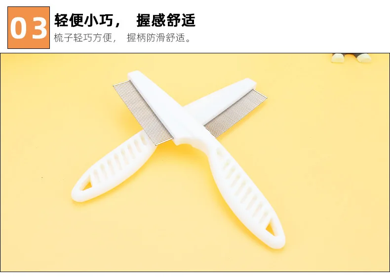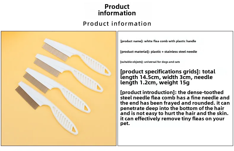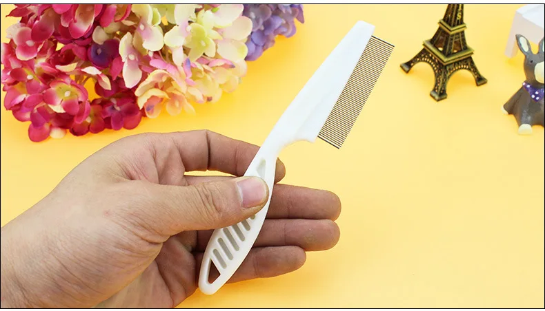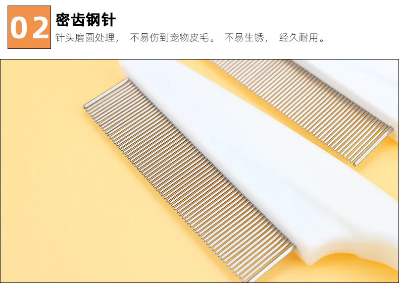 Peine de pulgas para eliminación de perros y gatos, peine de aguja de acero con dientes densos de plástico, suministros de limpieza