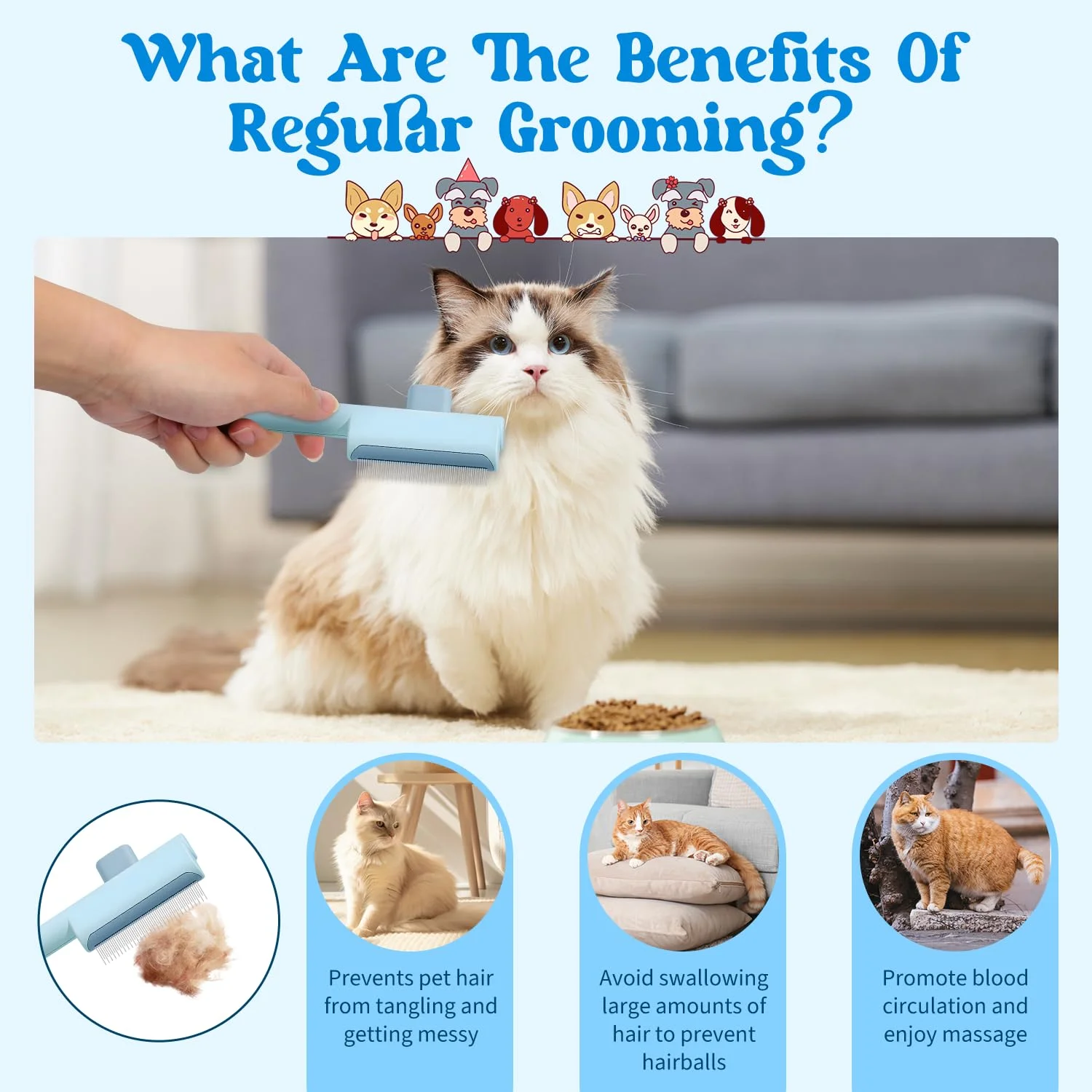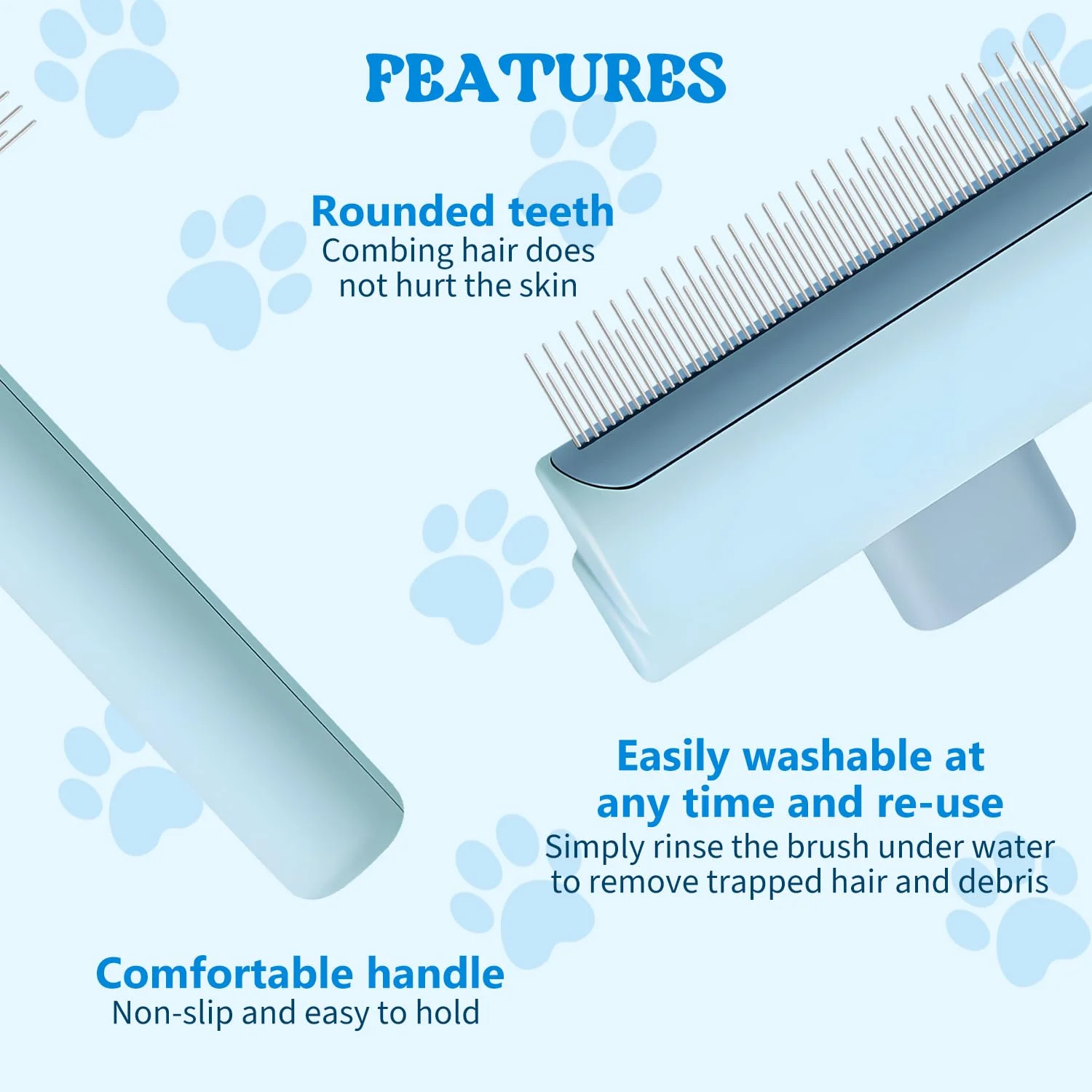 Ergonómico y fácil de usar: con un mango ergonómico para un agarre cómodo, este cepillo de depilación para mascotas facilita el aseo.Su diseño fácil de usar garantiza una experiencia fluida y agradable tanto para usted como para su mascota.
