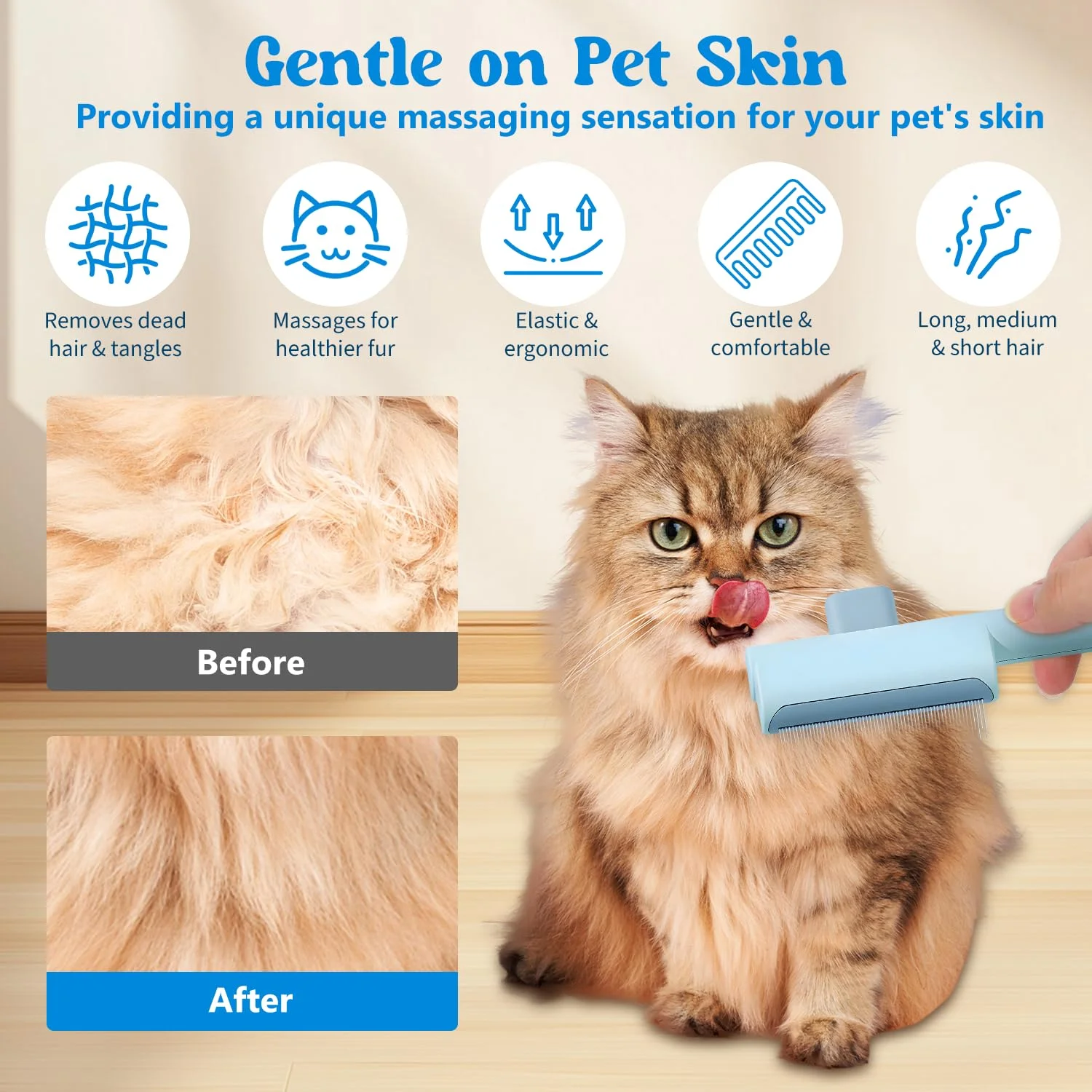 Herramienta de limpieza multifuncional: ¡Perfecta para todos los gatos y perros, grandes o pequeños! Este cepillo no solo mantiene el pelaje de su mascota ordenado sino que también hace maravillas en muebles, ropa y espacios difíciles de alcanzar. Con solo presionar un botón, la depilación se vuelve rápida y sin complicaciones, lo que la convierte en una herramienta imprescindible para todo dueño de mascota.