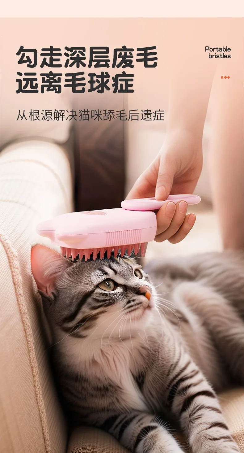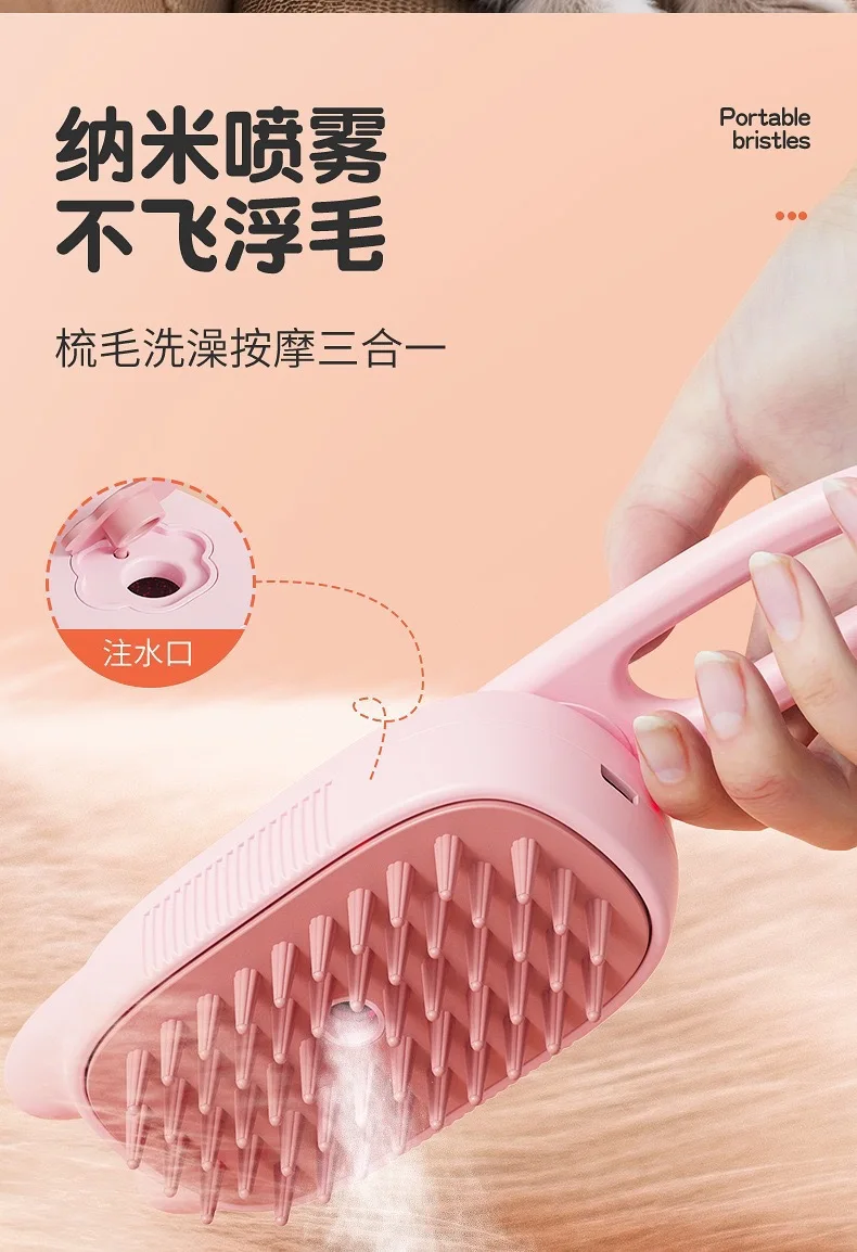 Peine rociador para mascotas, cepillo rociador de un botón, limpieza, depilación, peine, vapor para gatos y perros, pelo antimoscas, suministros eléctricos para mascotas