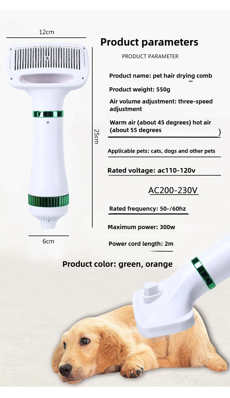 Peine secador de pelo para perros y mascotas, depilación de aire caliente 2 en 1, peine de belleza para mascotas, peines eléctricos para gatos