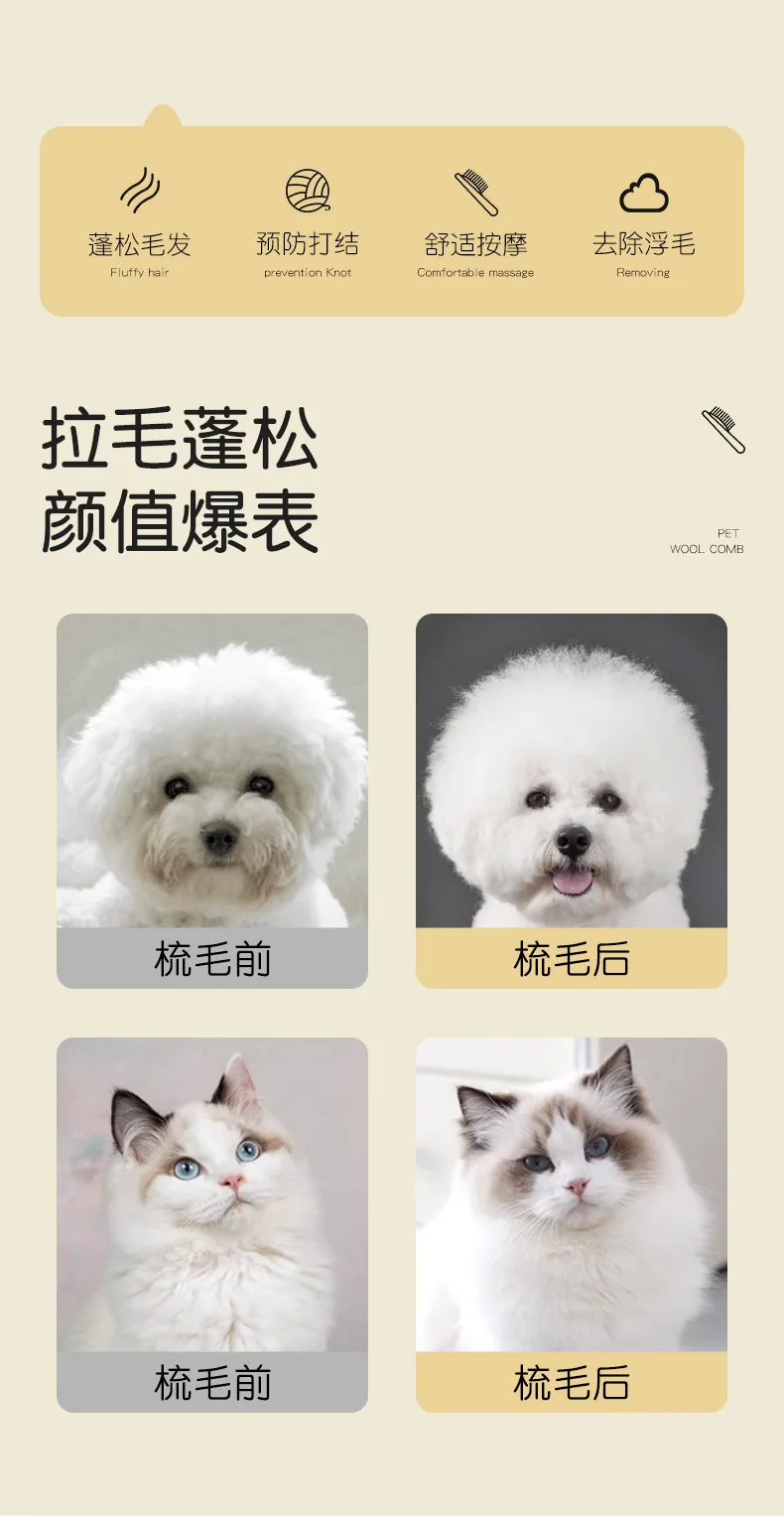 Peines para mascotas, cepillo de masaje, peine de belleza para eliminar el pelo flotante, peine de aguja para perros, suministros para mascotas y perros