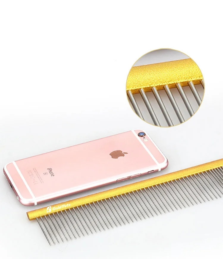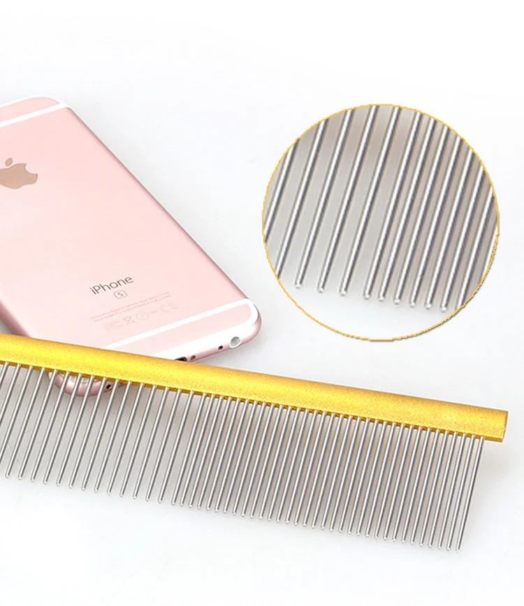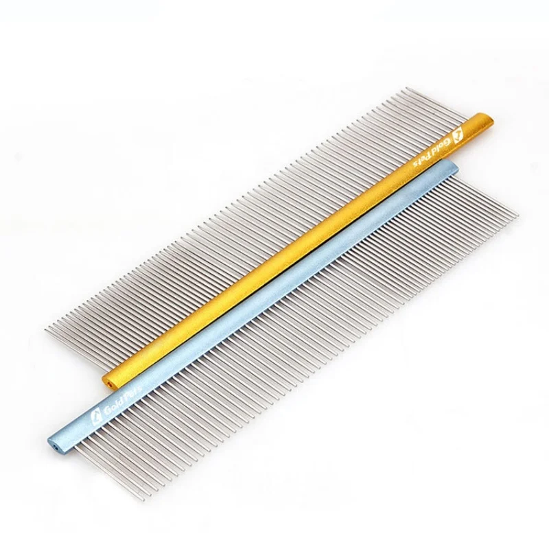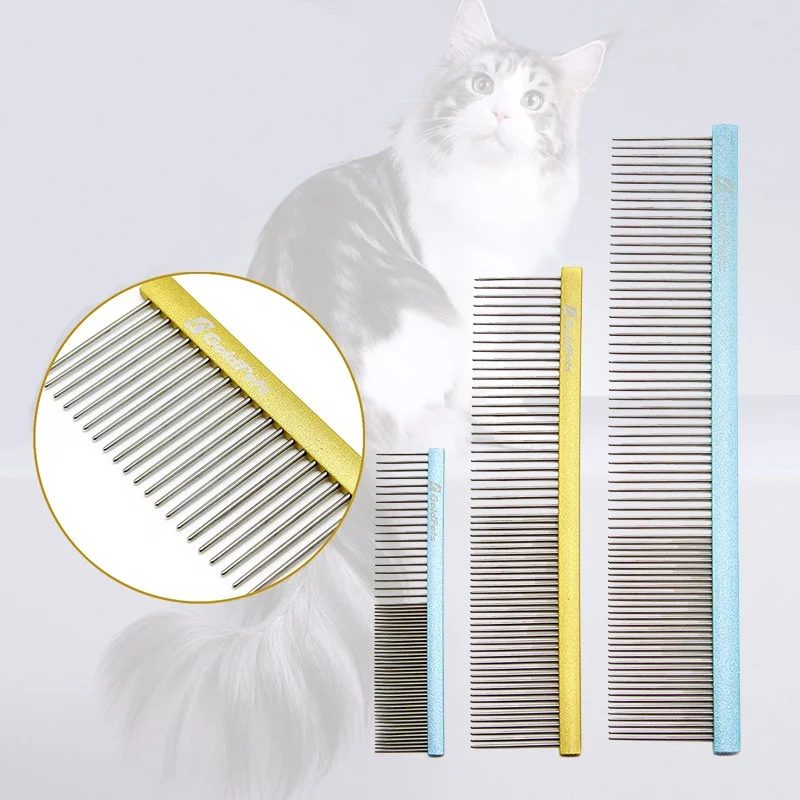 Peines para perros con extremos redondeados, peine de acero inoxidable para eliminar nudos de enredos, herramienta de aseo profesional para mascotas, peine de Metal para gatos