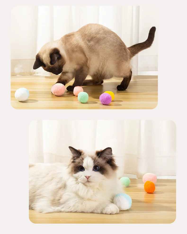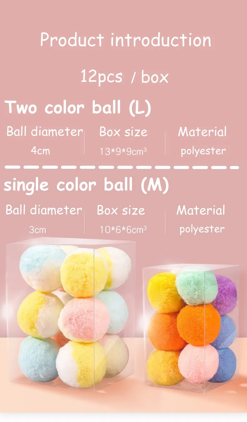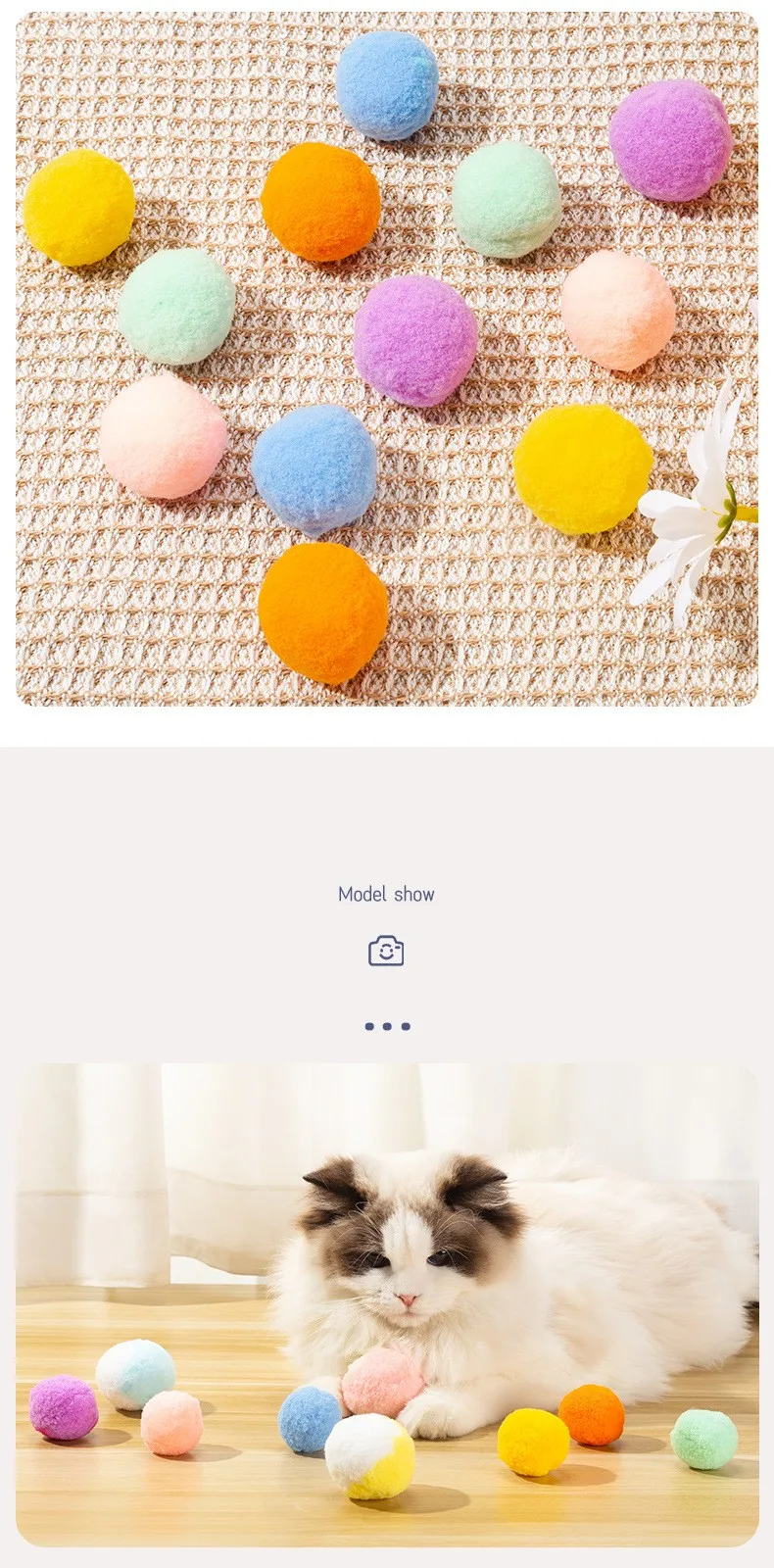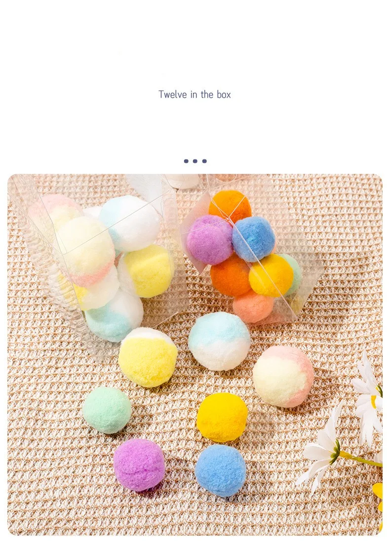 Pelota elástica de felpa para gatos, juguete interactivo para masticar, accesorios para mascotas, caja de regalo de 3/4cm, 12 piezas