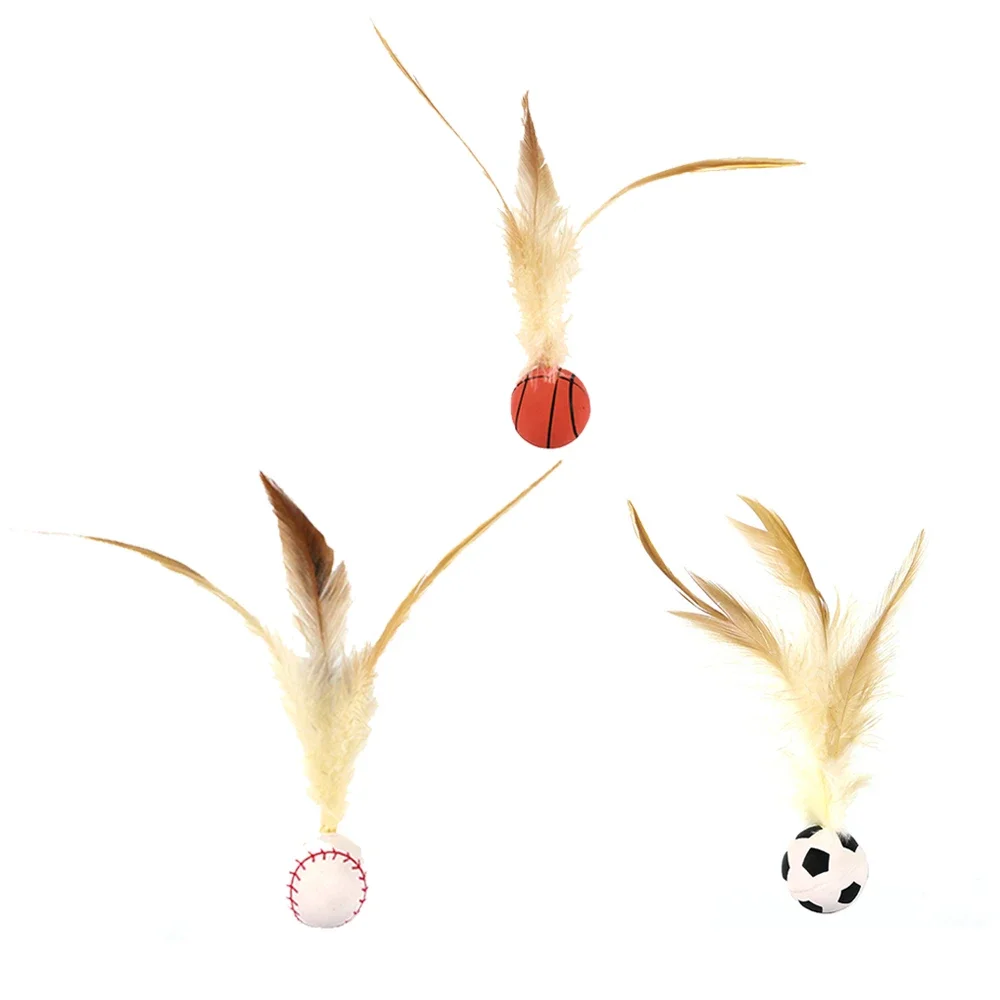 2 unids/set de pelotas hinchables para gatos, juguete interactivo para mascotas, juego divertido de persecución, juguetes de plumas para gatos, accesorios para gatos