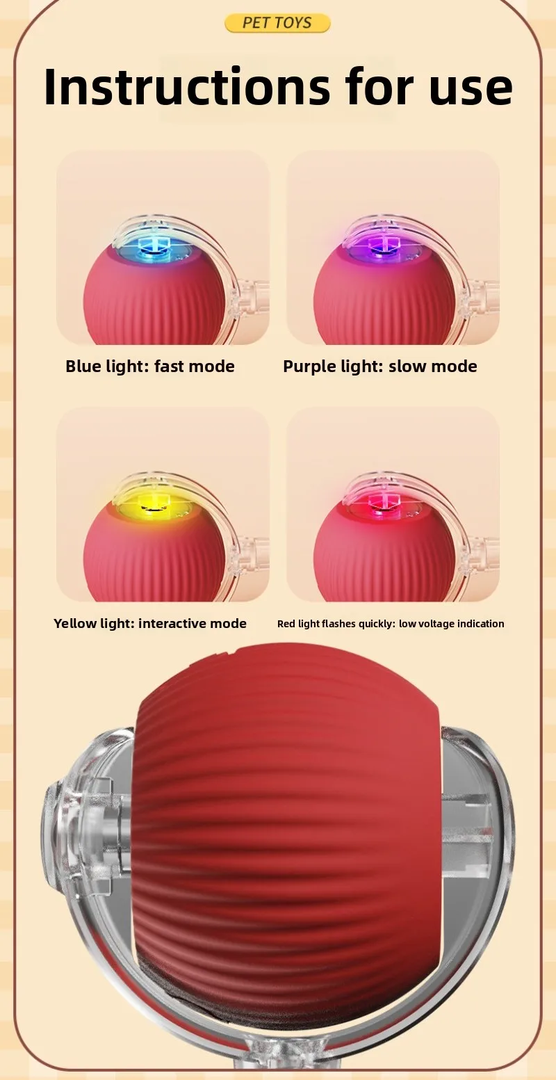 Características: 1.Evite obstáculos de forma inteligente 2.Movimiento irregular al encontrar obstáculos. 3.Material de silicona de calidad alimentaria Material saludable, tenga la seguridad de moler y morder, el material espesado no es fácil de romper 4.Ingrese al estado de espera después de 5 minutos de trabajo en cada modo: ingrese al estado de espera y se apague automáticamente si no se despierta después de 30 minutos