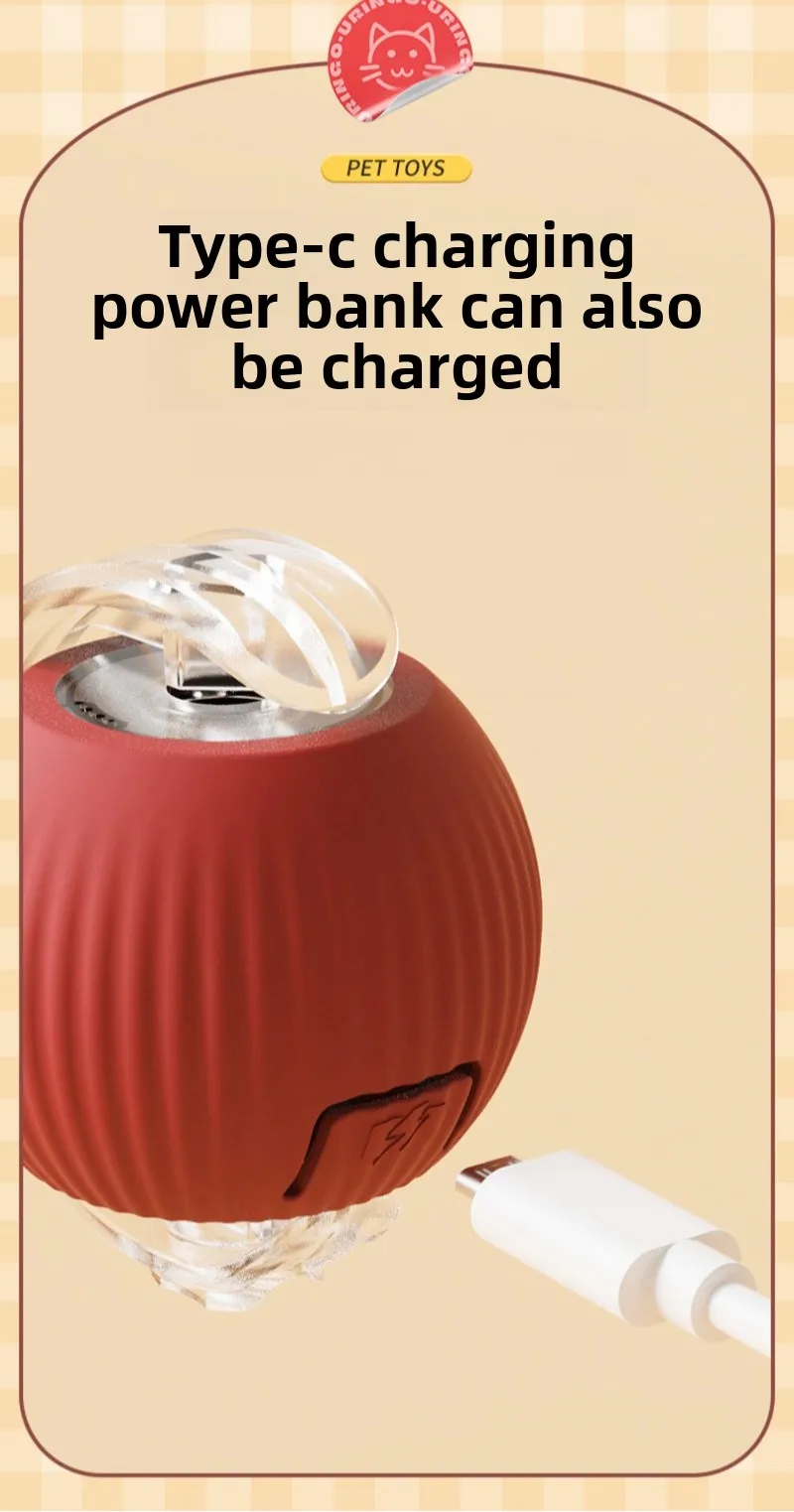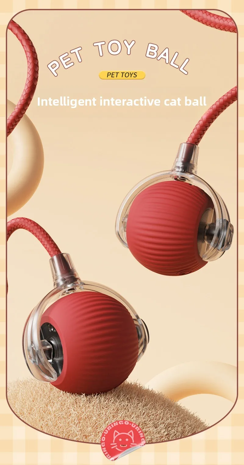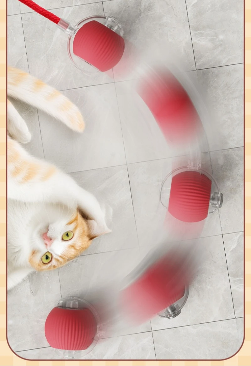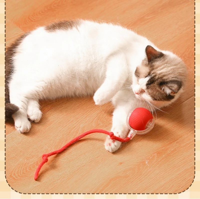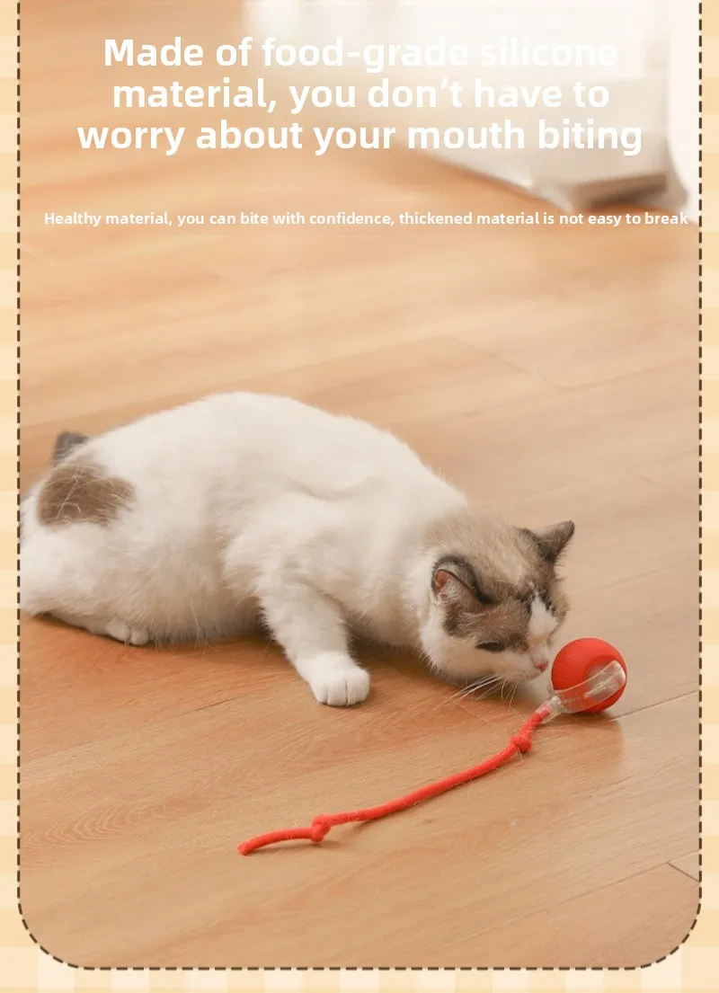 Pelota interactiva para gatos, pelota rodante automática con cola, productos interactivos inteligentes recargables para mascotas, accesorios de juguete de Gel de sílice