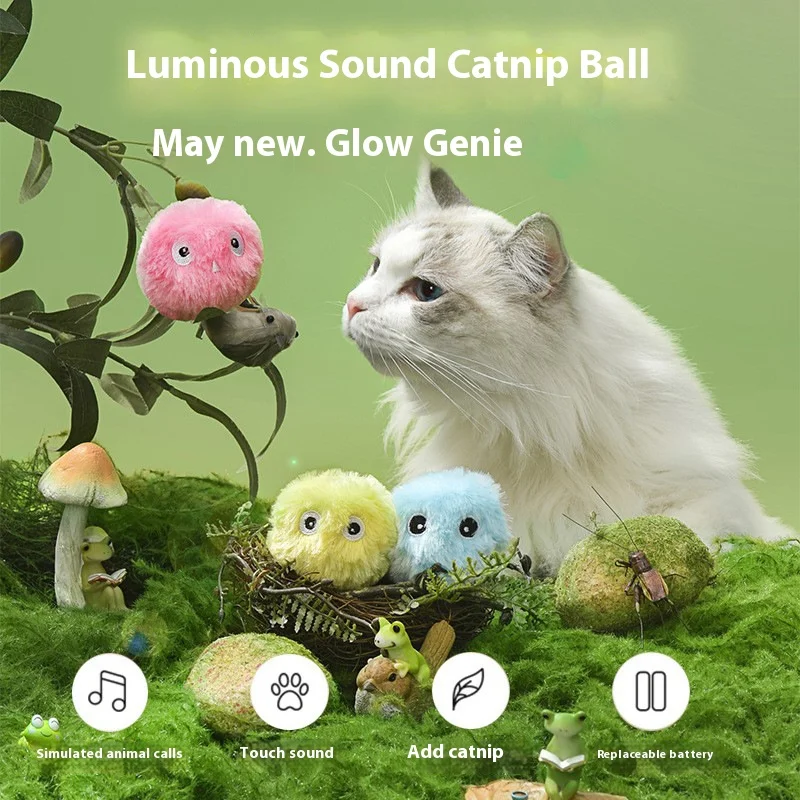 Pelota interactiva, juguetes inteligentes para gatos, juguete de entrenamiento eléctrico de felpa con hierba gatera, producto para mascotas con sonido táctil, pelota de juguete con chirrido