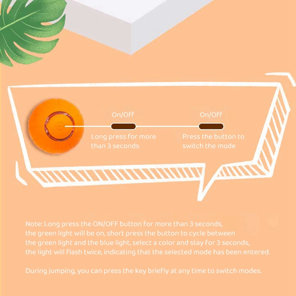 Nota interesante Y HINCHABLE: Mantenga pulsada la tecla de control ON/OFF durante más de 3 segundos, se encenderá la luz verde, presione brevemente la tecla para alternar entre la luz verde y la luz azul para confirmar que un color se mantiene durante 3 segundos y la luz parpadeará dos veces, Indica que se ha introducido el modo de confirmación. El modo se puede cambiar acortando la tecla de control en cualquier momento durante el salto.