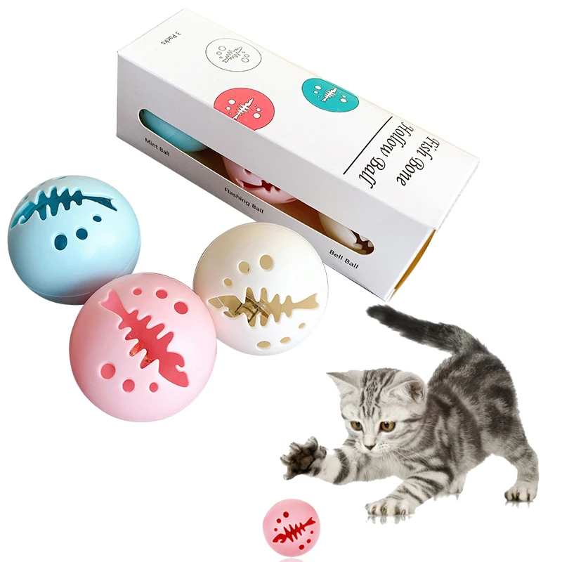 Juguetes de pelota para mascotas de 3 piezas, juguete para gatitos, hueso de pez, divertida pelota para gatos, juguete interactivo para masticar mascotas, juguetes para perros pequeños, gatos, suministros para mascotas