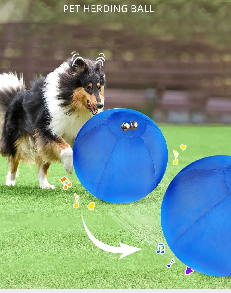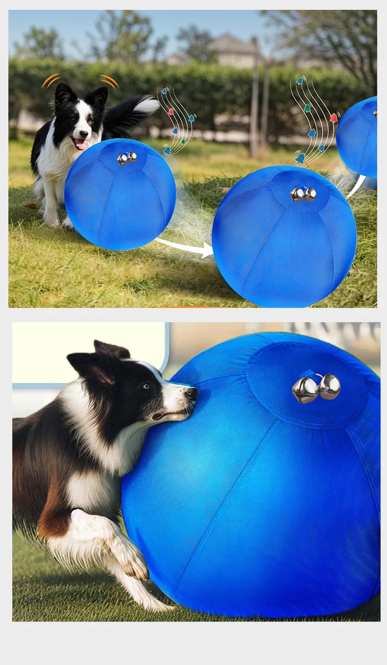 Pelota de rugido de 17,7 pulgadas con campana para perros, pelota de entrenamiento inflable para perros, juguetes de doble capa, pelota grande resistente para perros para razas Herding