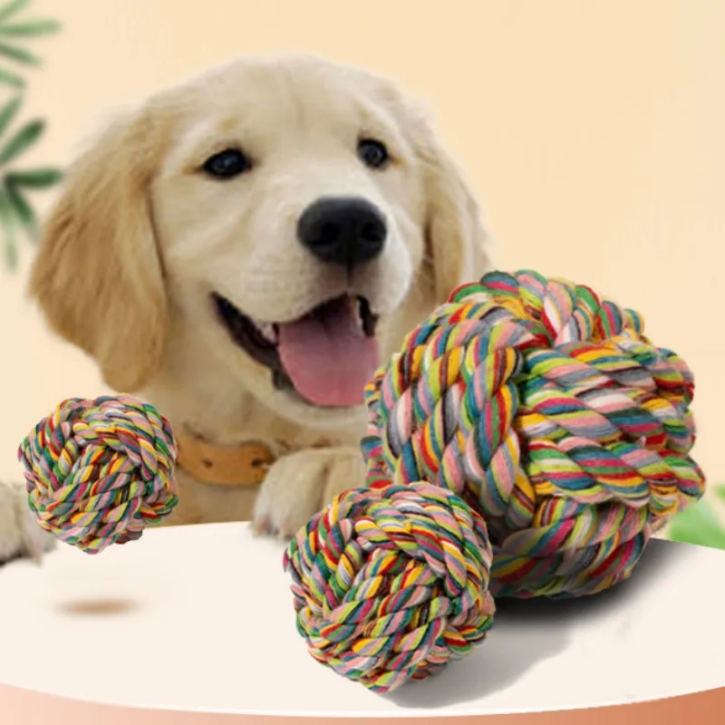 Pelota tejida de algodón para perros, cuerda resistente a las mordeduras, Bola de nudo, juguete de molienda de dientes, bolas de entrenamiento para cachorros