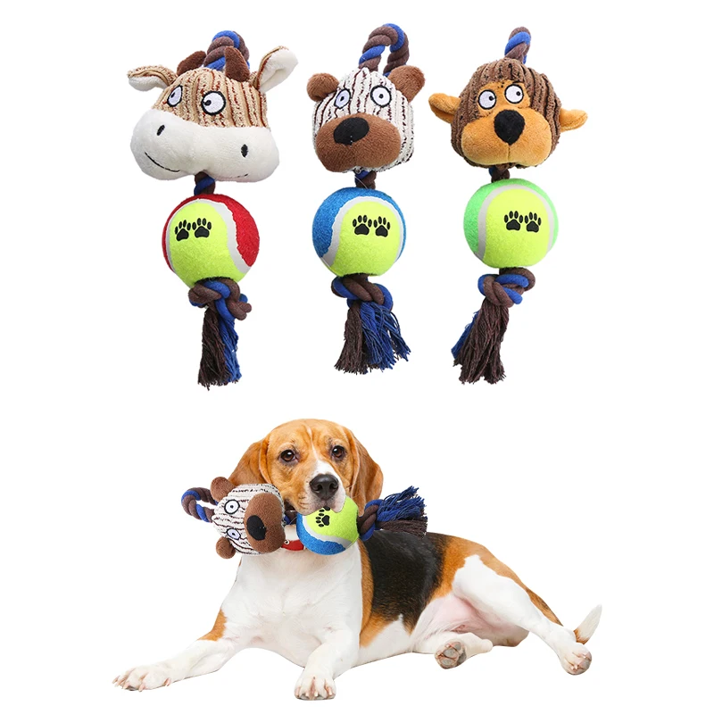 Pelota de tenis de pana para perro, juguete de cuerda de algodón, resistente a las mordeduras, con sonido, juego interactivo