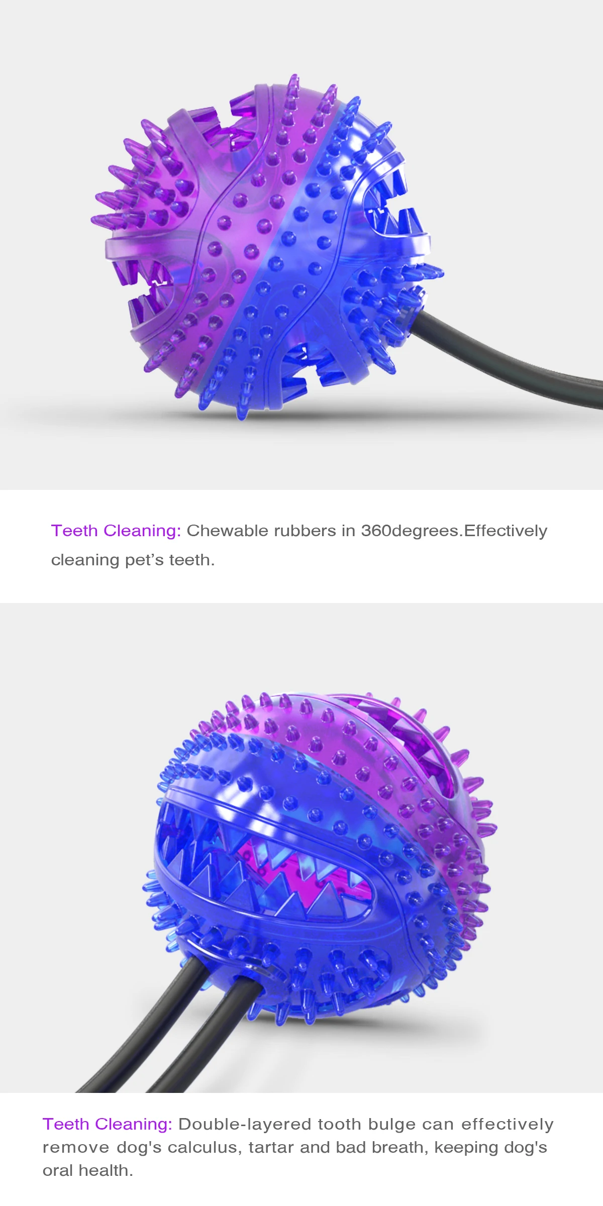 Pelota de TPR con ventosa interactiva para perros, Cuerdas elásticas, suministros para cachorros, Limpieza de dientes de perro, juguetes para masticar