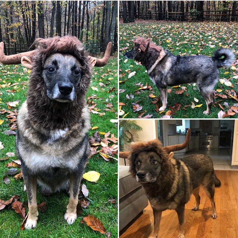 Mascota perro León melena cuernos peluca pelo decoración perro peluca pelo disfraz para perro grande mediano regalo de Halloween Cosplay sombrero divertido ropa para mascotas