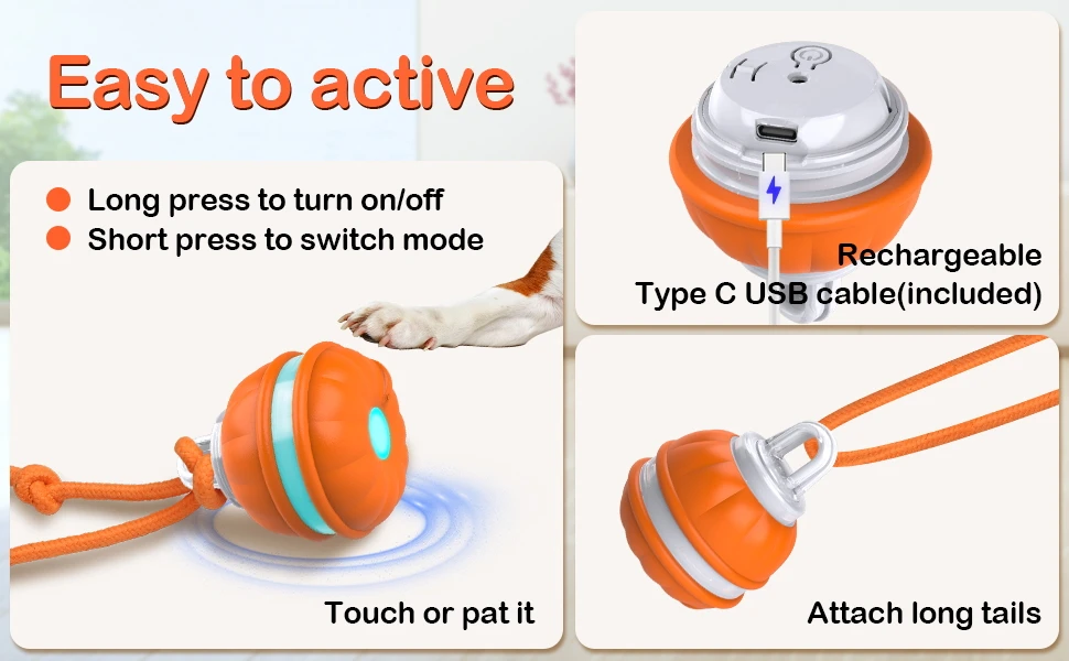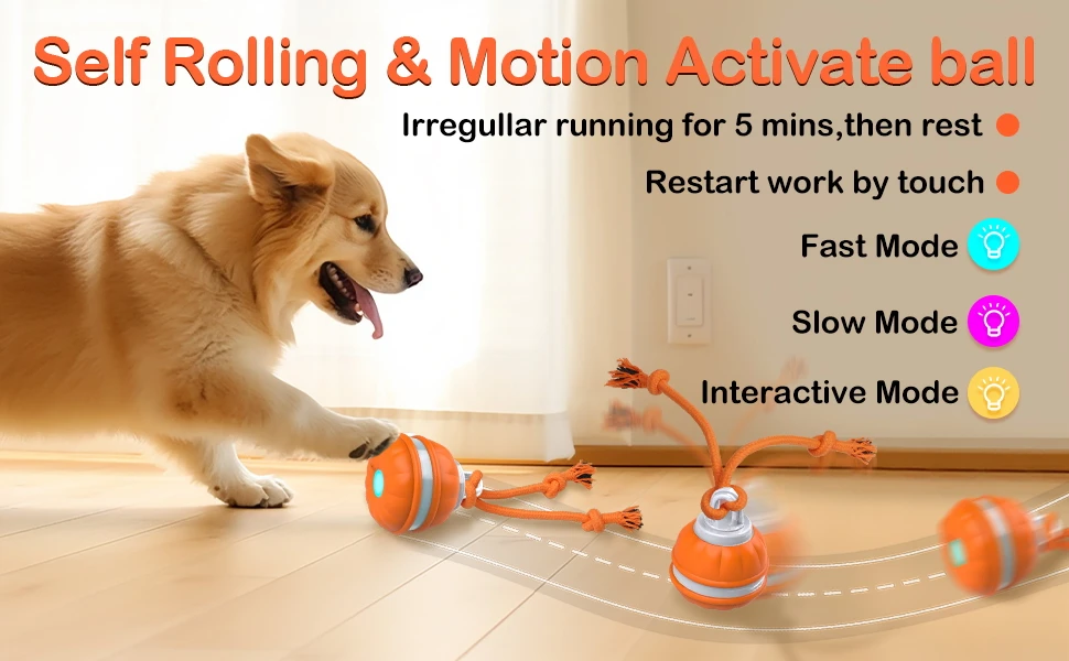 Bola rodante activa activada por movimiento para perros, juguete interactivo automático para perros