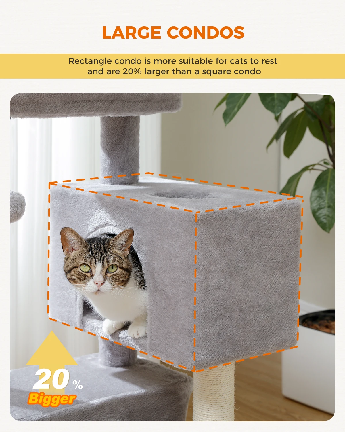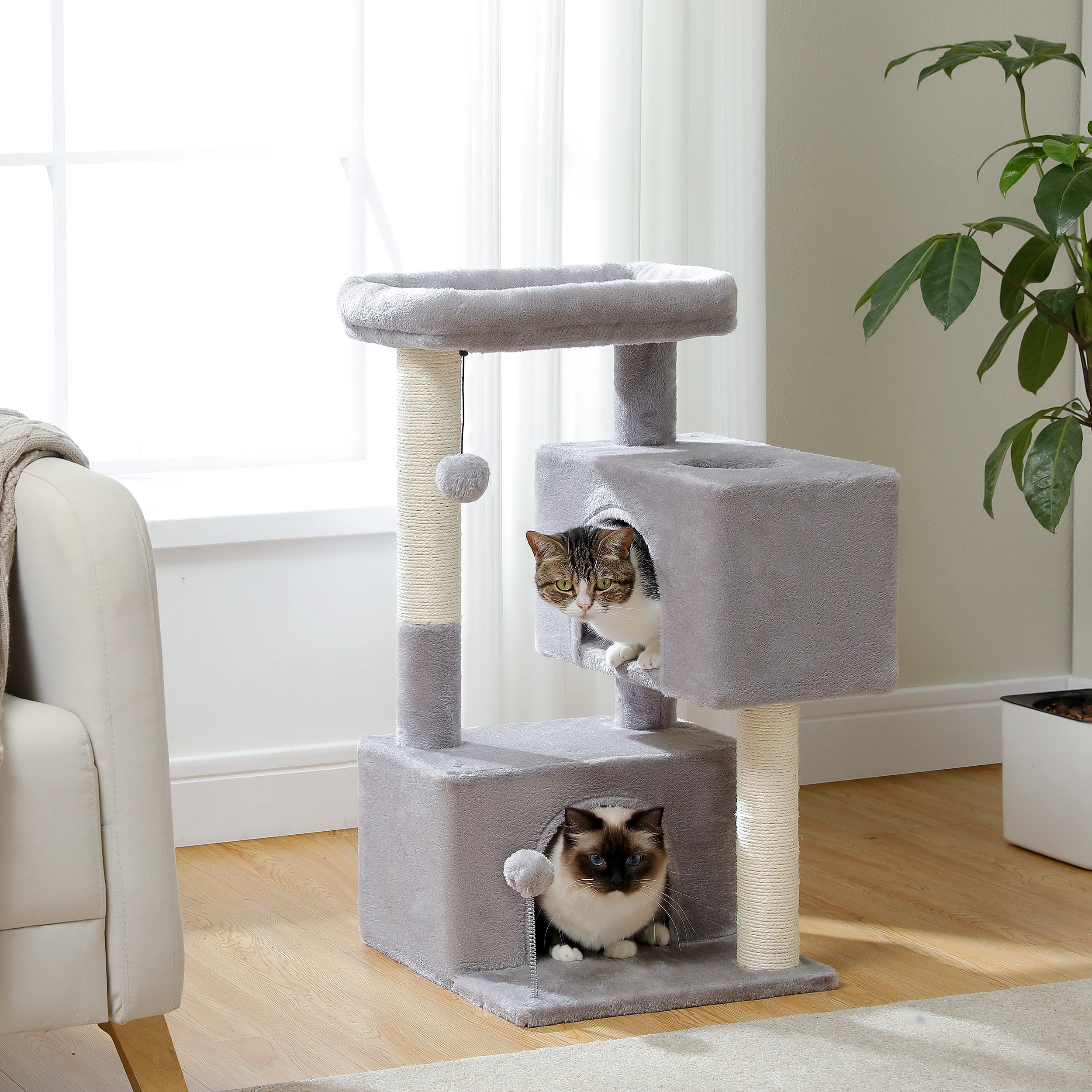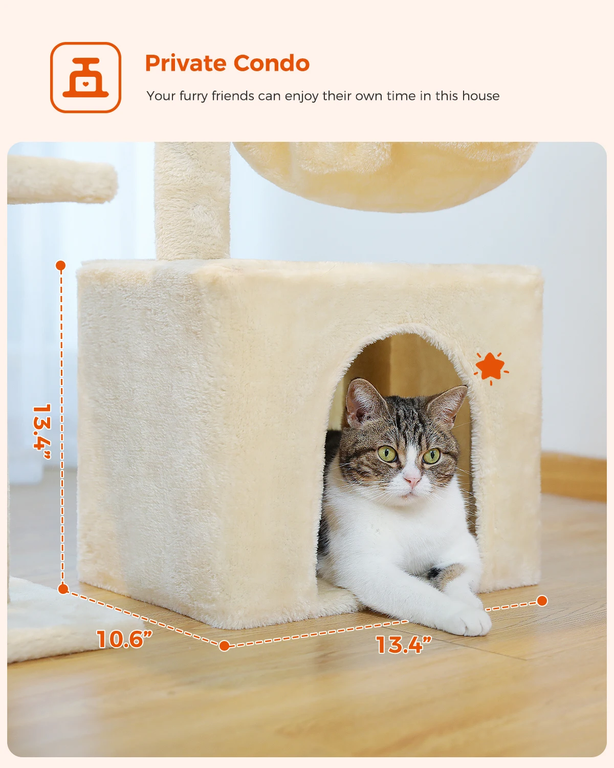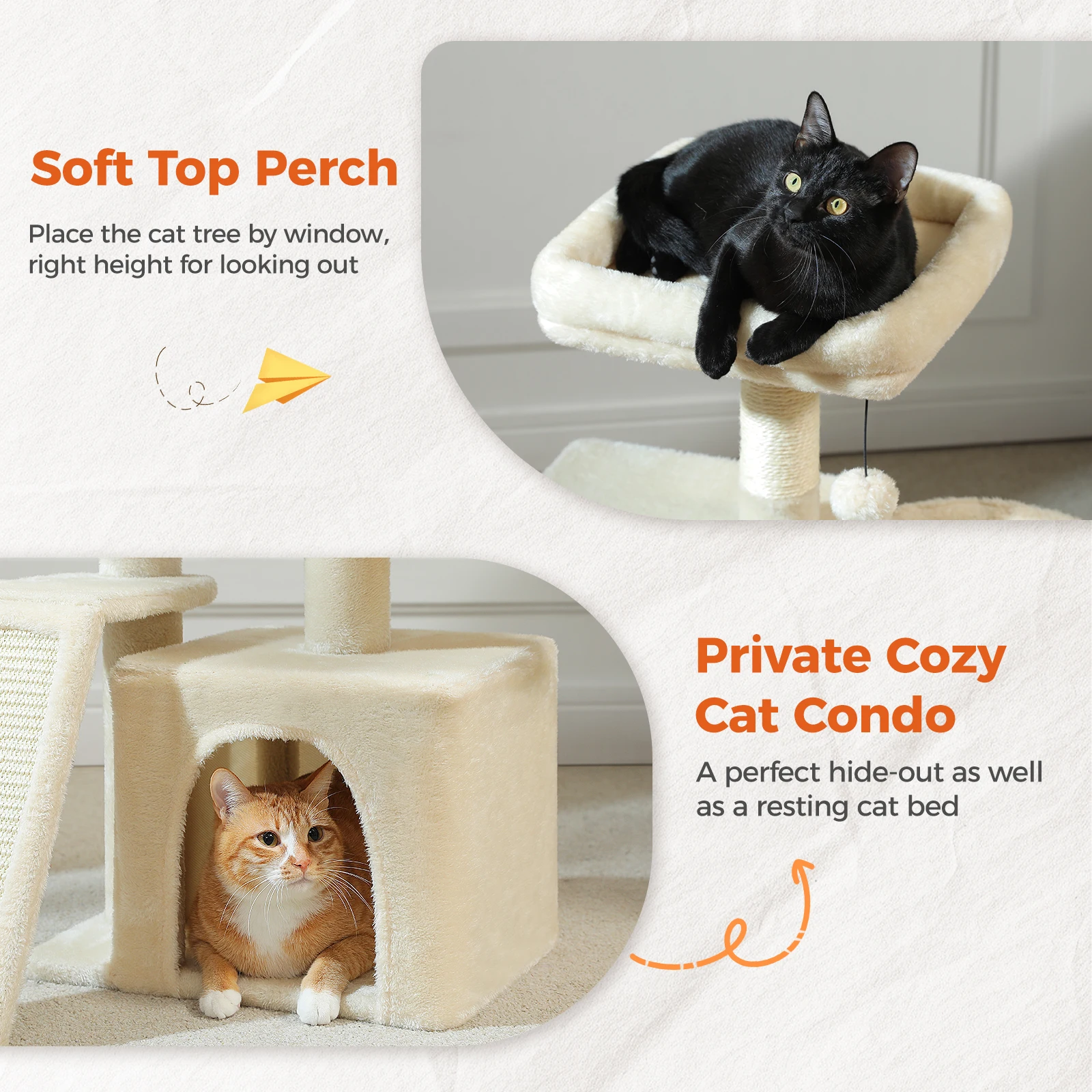 4. Comfortable Double Condos for Cozy Naps: Two roomy, enclosed condos provide soft, secure spots for your cat to curl up, hide, or snooze—ideal for privacy-loving kitties or multi-cat households.