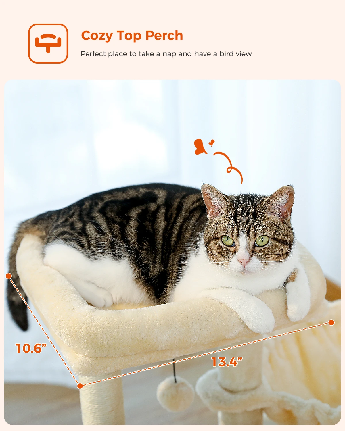 2. Detachable Top Perch for Versatility: The removable top perch lets you customize the setup—use it as a standalone sunning spot or keep it attached for an extra high vantage point, adapting to your cat’s mood and your space.