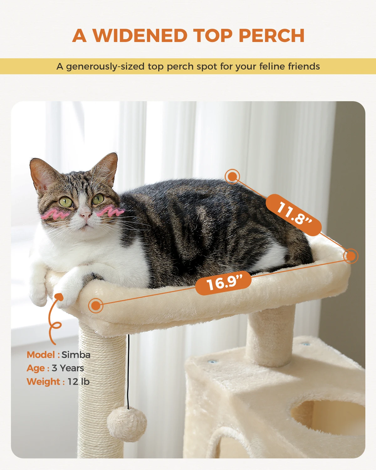 6. Sturdy & Pet-Safe Construction: Built to support climbing and playful antics, the tower ensures stability while using pet-safe materials, keeping your kitty secure during every adventure.