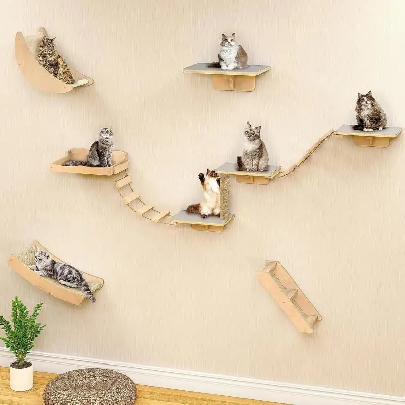 Percha de escalada para gatos montada en la pared, plataforma para saltar, hamaca, escalones de pared para dormir, jugar, descansar