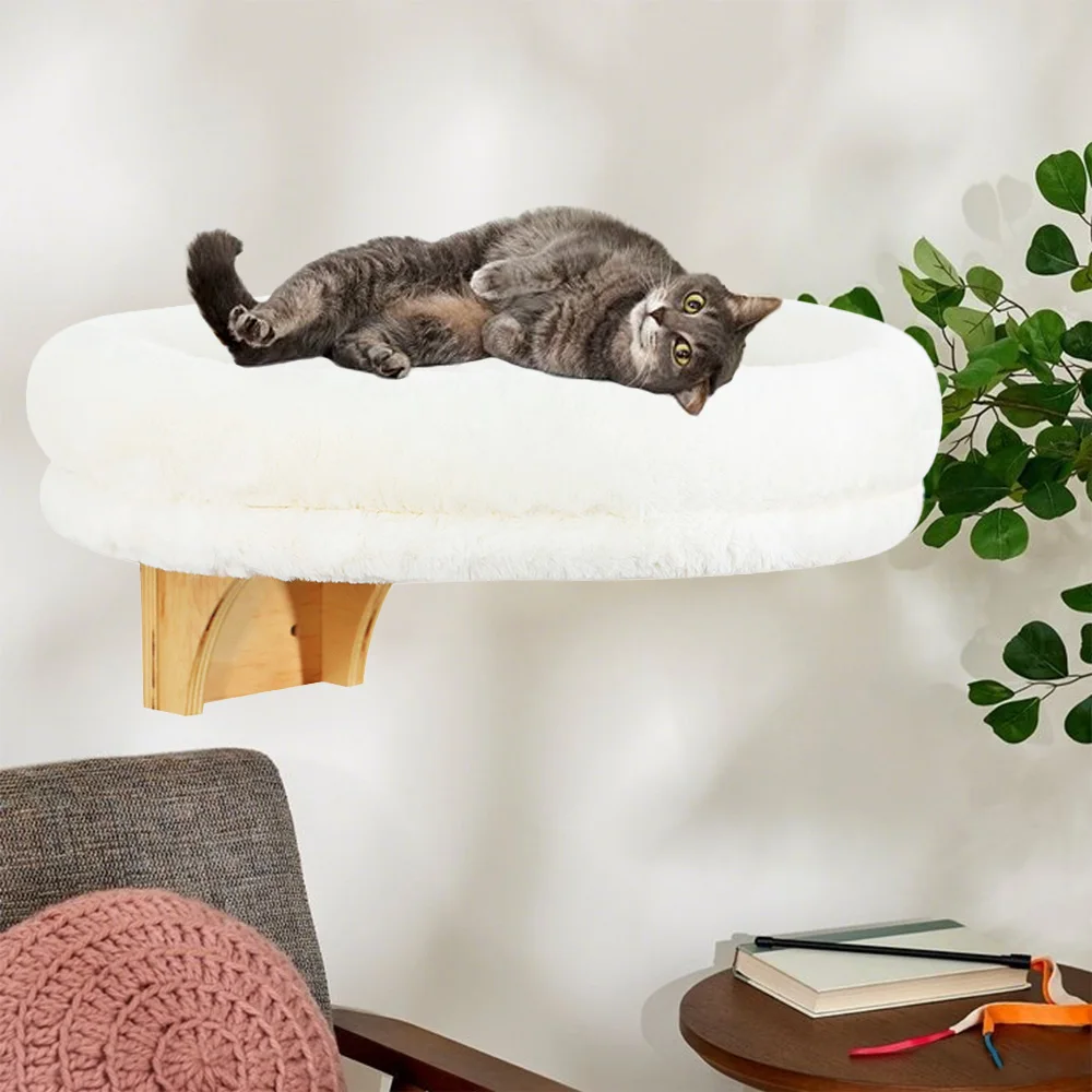 Percha para gatos de madera montada en la pared con cojín, hamaca para gatos, estantes para cama para gatos, muebles para gatos de interior para dormir y jugar a los gatitos