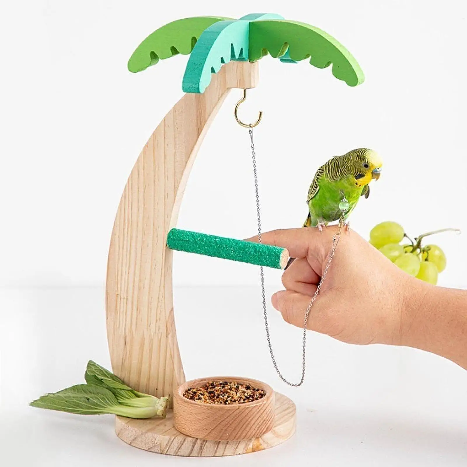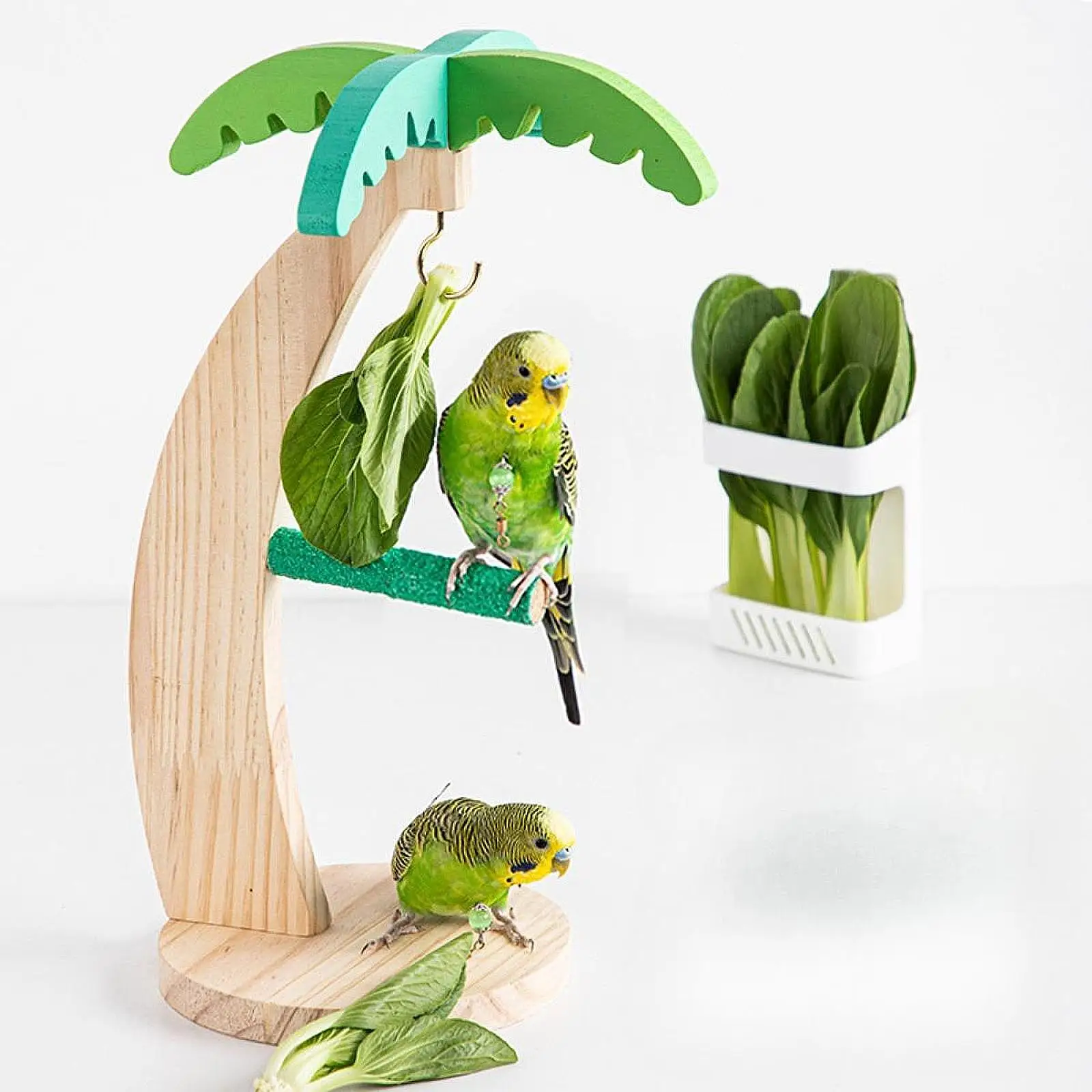 【Entretenimiento】: elaborado con madera de calidad, este soporte para pájaros de madera está diseñado para parecerse a un divertido cocoteros.Proporciona un entorno estimulante para que su mascota pueda trepar y jugar de forma segura.