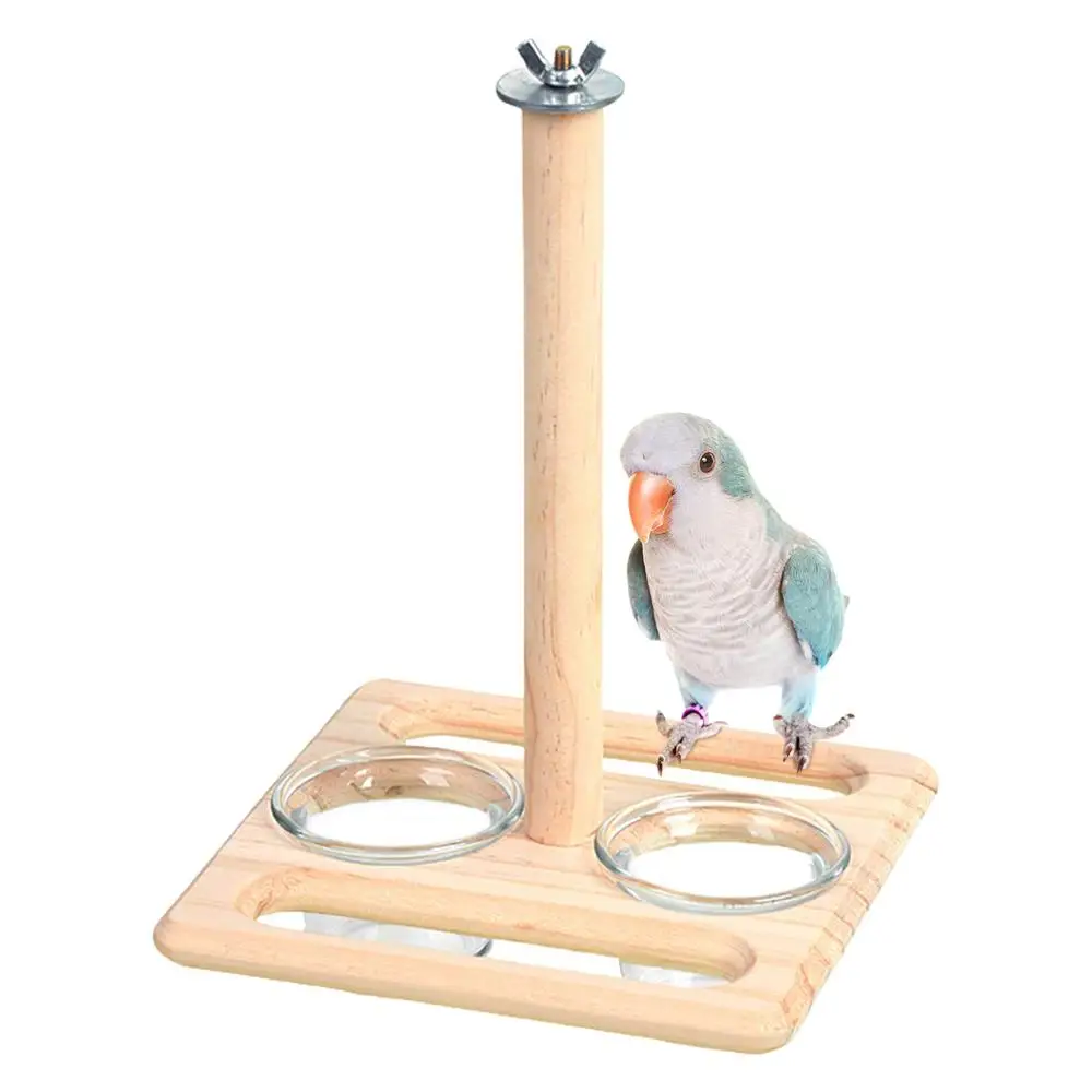 4. Conveniente de instalar: suspenda la percha de periquito de madera con tazas de tazón de alimentación en cualquier lugar de la jaula fácilmente para darle a su pájaro un lugar cómodo y estable para descansar y jugar.