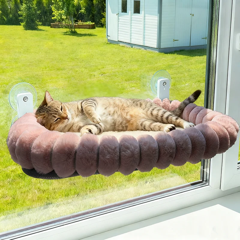 Equipada con 4 fuertes ventosas, esta percha para ventana para gatos garantiza estabilidad y seguridad para su amigo felino.