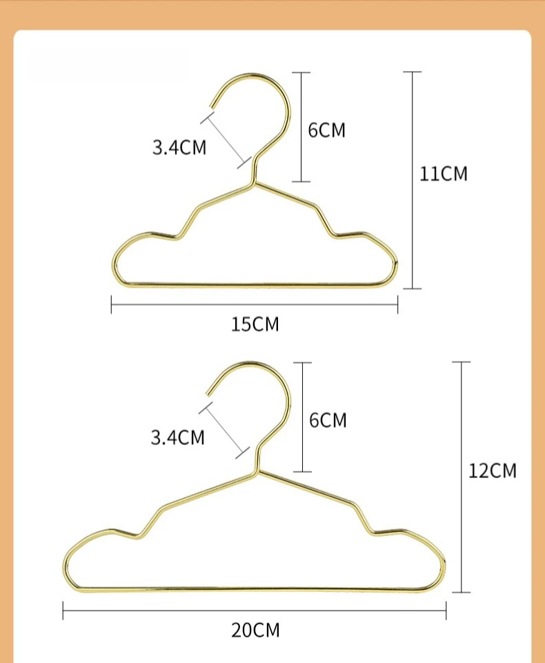 Nombre del producto: Perchas para ropa para mascotas, Mini percha de Color dorado, percha pequeña de Metal para ropa para perros de peluche, gatos, marionetas, muñecas, tienda para mascotas, soporte para ropa