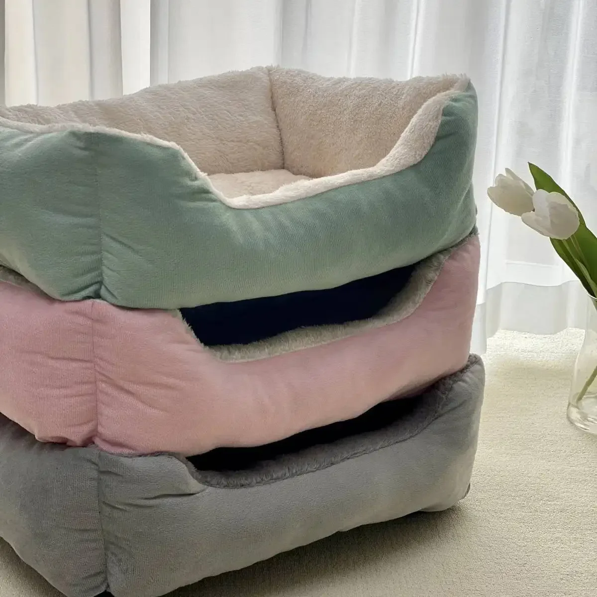 Perrera cuadrada de felpa para perros y gatos, sofá cama para perros medianos y pequeños, cojín cálido para invierno, sofá cama para mascotas, estera, producto para mascotas