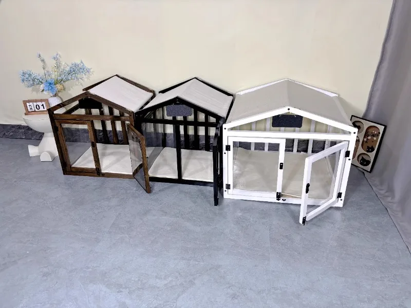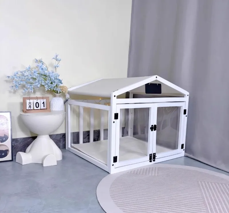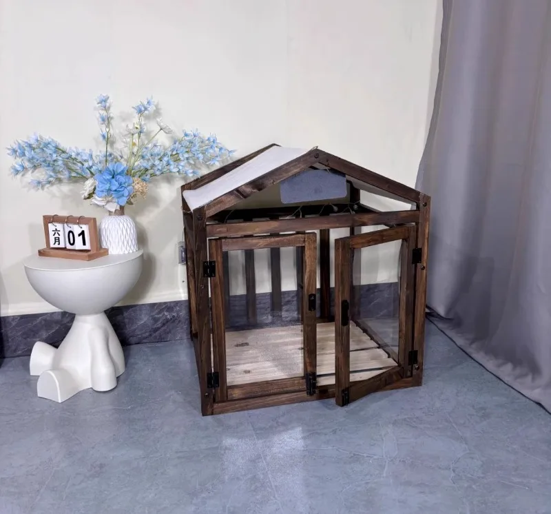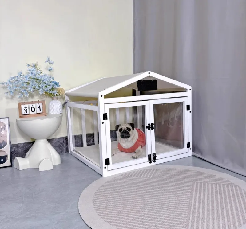 Perrera transparente de madera maciza, recinto para perros pequeños, casa de lujo para mascotas, casa para perros para interiores y exteriores, caja impermeable, productos para mascotas
