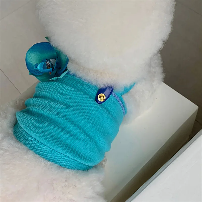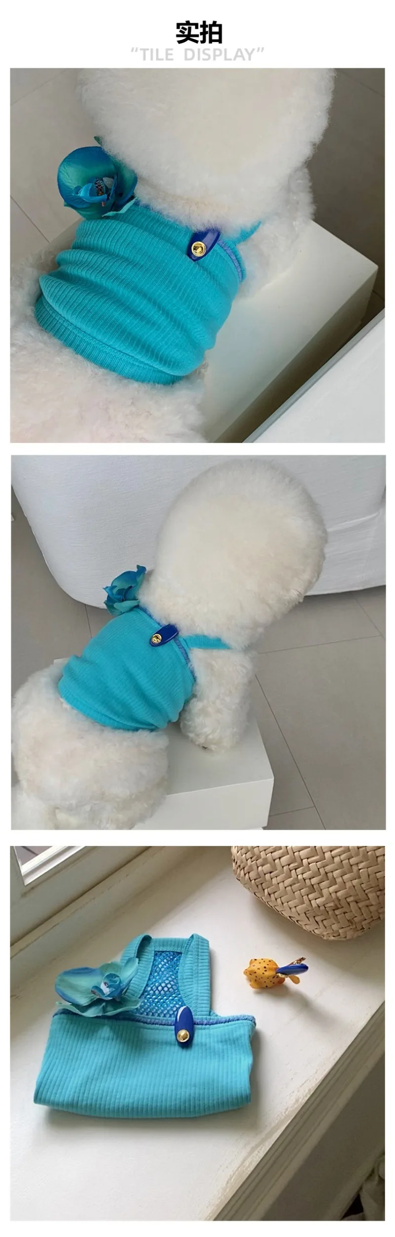 Perro azul flor apliques Sling camisa Top ropa para perros para perros pequeños medianos y grandes ropa para gatos XS-XL ropa para Chihuahua