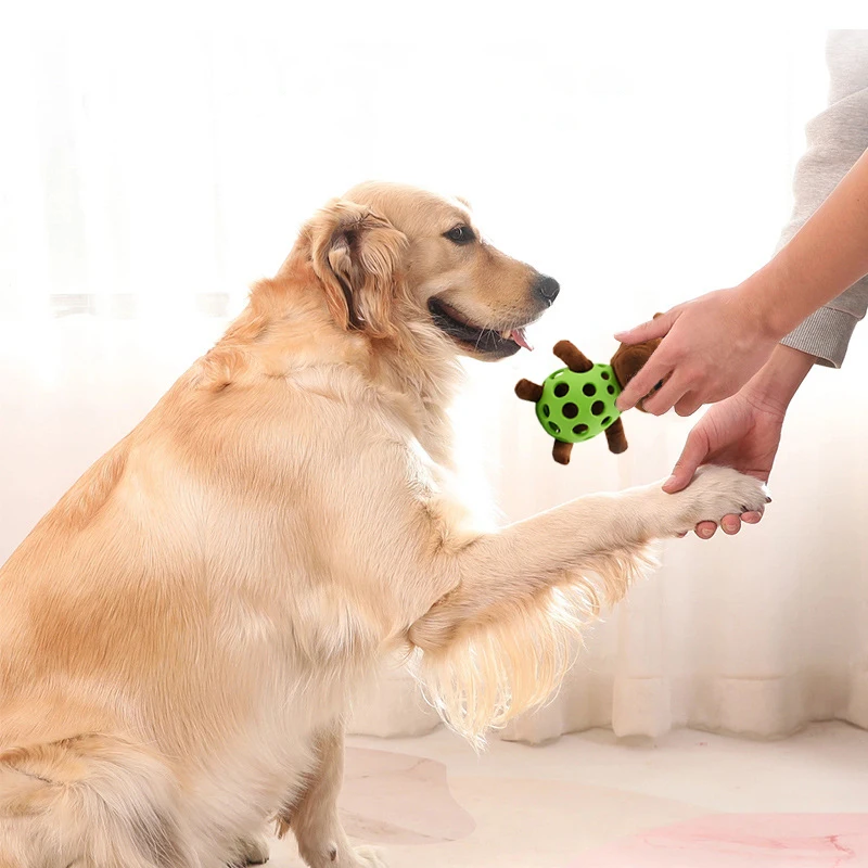 2.Built-in sounder,squeeze and press to make a sound and keep your dog more interested