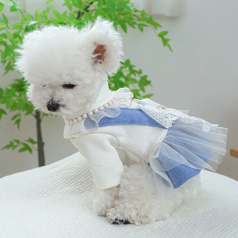 Perro invierno perro vestido de princesa hebilla de tracción ropa para perros para perros pequeños Teddy vestido con tirantes falda abrigo para perros ropa para perros