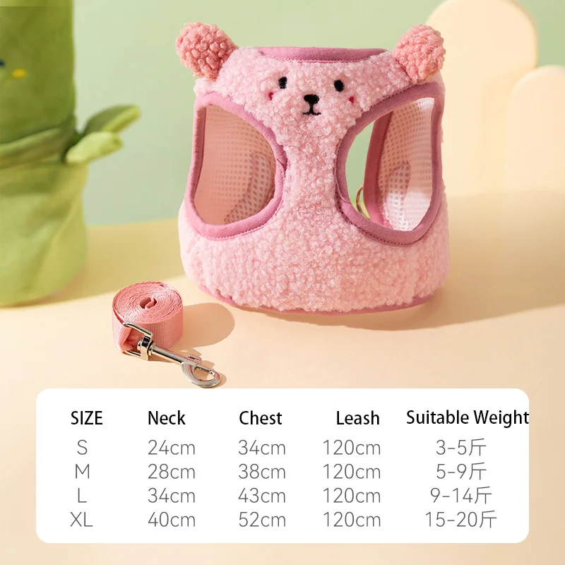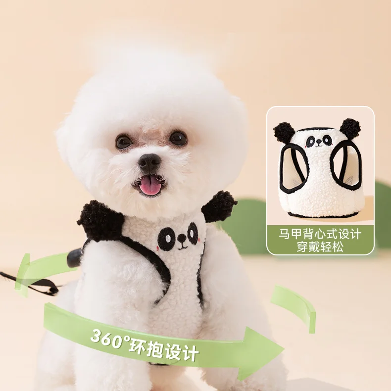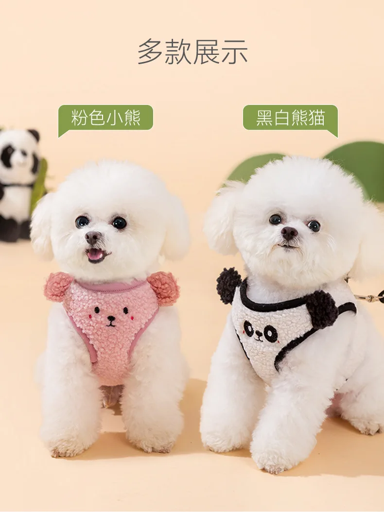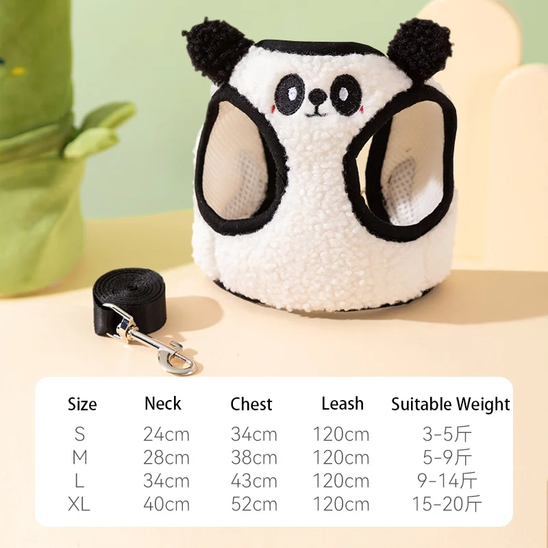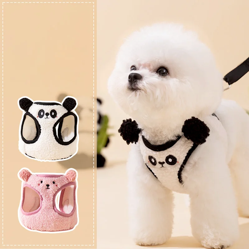 Perro lindo Animal de peluche Panda perro arnés y Collar de correa conjunto y perro de tamaño mediano Teddy chaleco al aire libre estilo arnés correa de perro