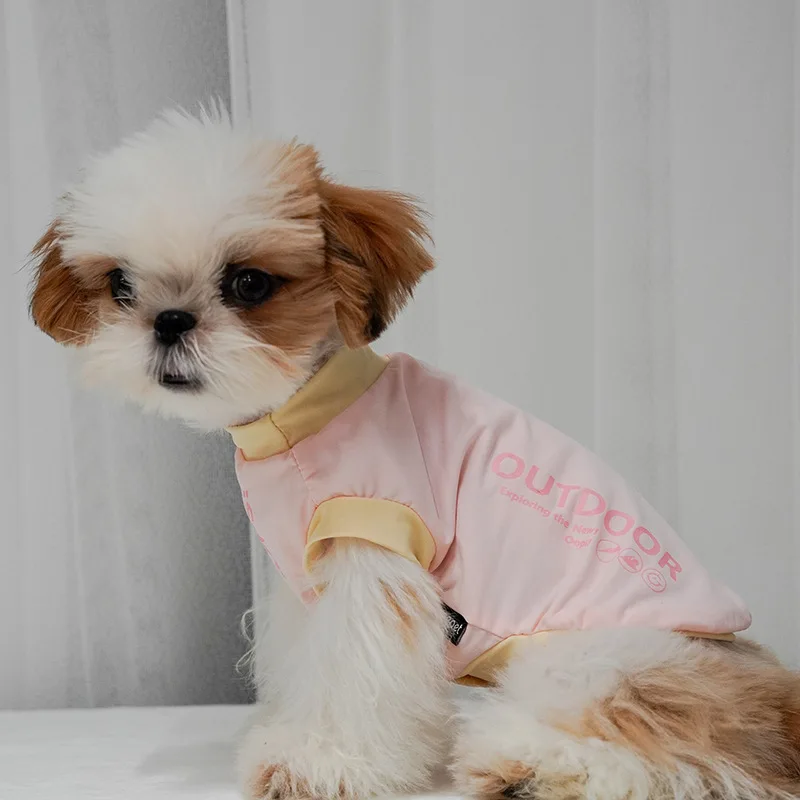 Perro mascota fresco primavera impreso Color bloqueado prendas de vestir exteriores caminar Schnauzer perro cachorro ropa perro chaleco refrescante