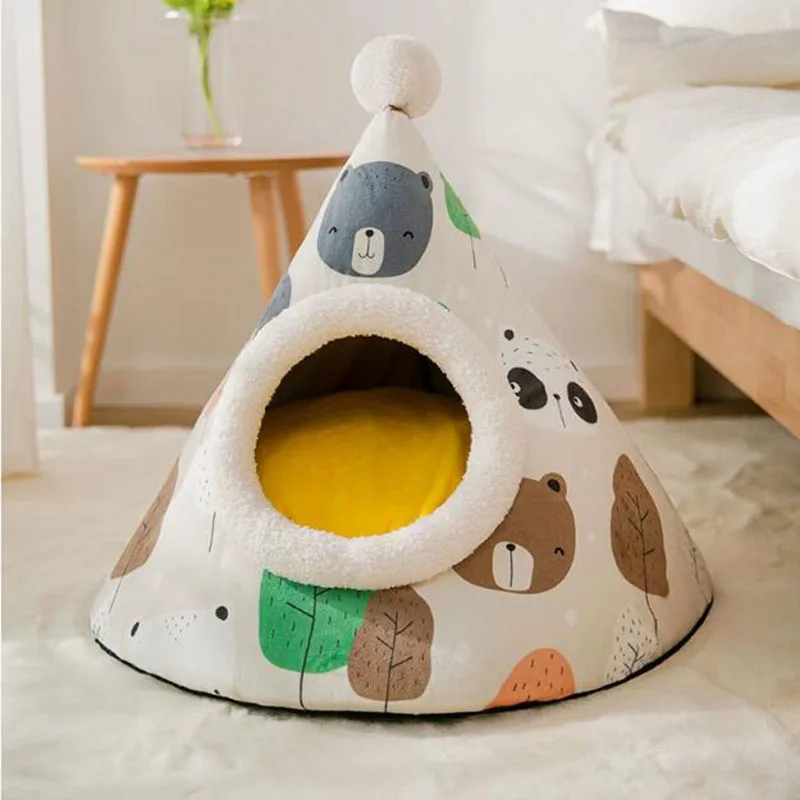 Perro otoño e invierno cálido a prueba de viento triángulo yurta tienda casa para perros Teddy perro pequeño cálido gato casa para mascotas