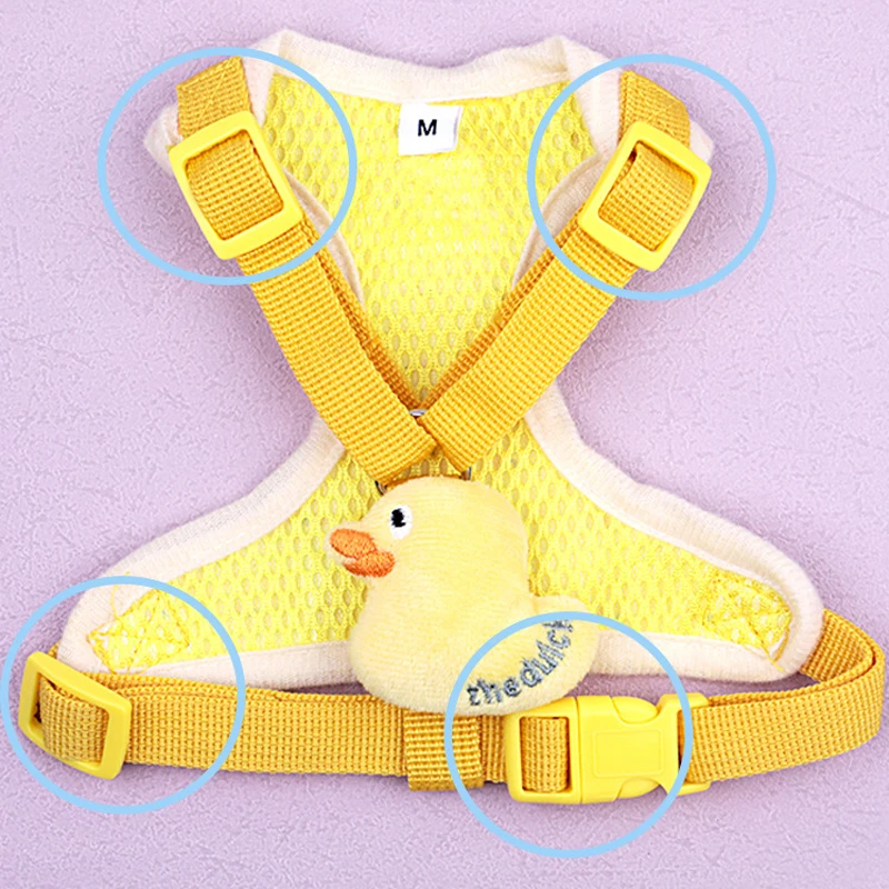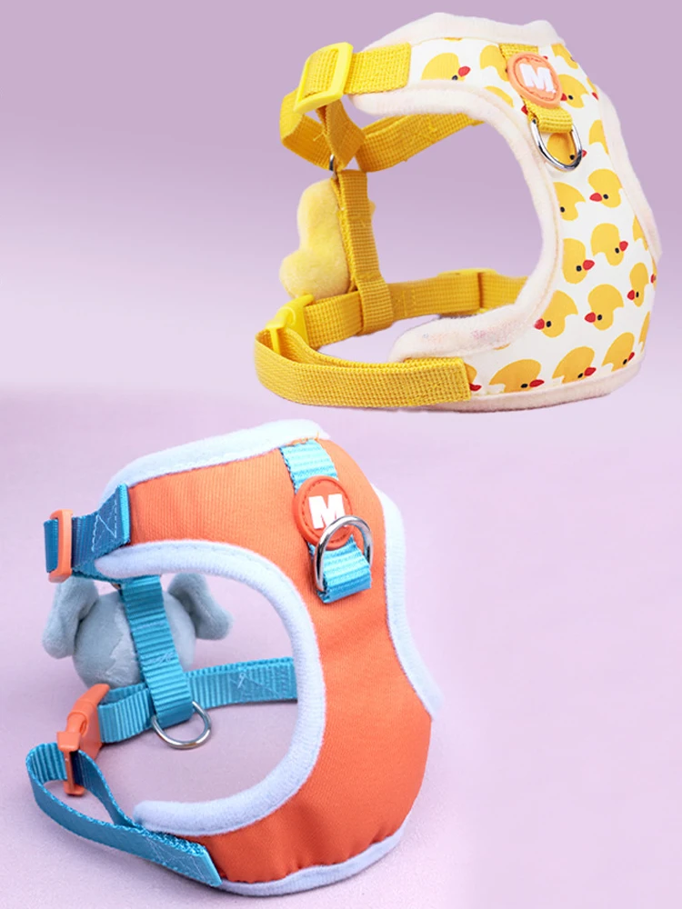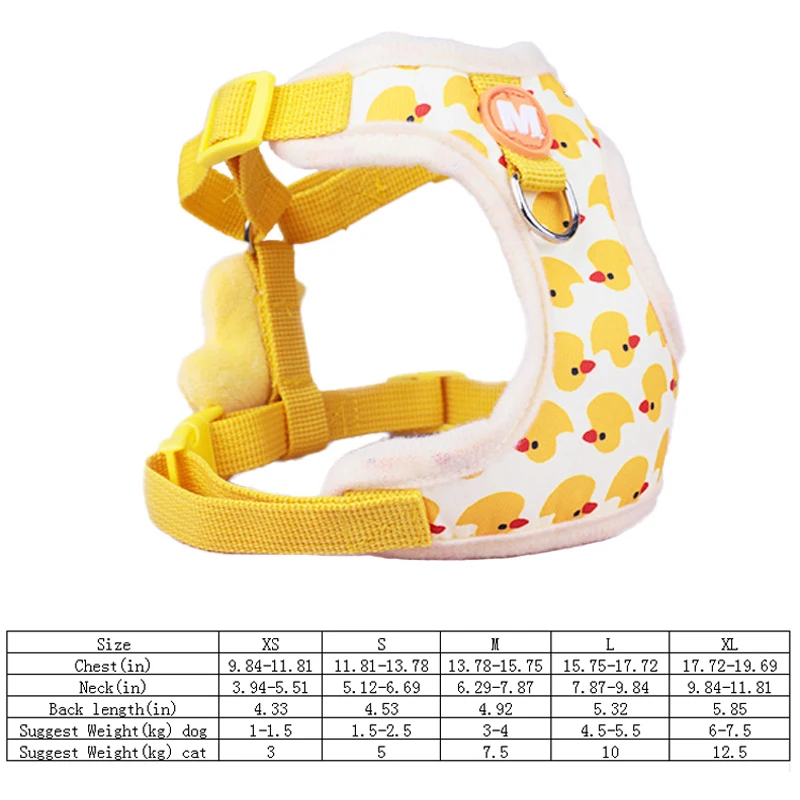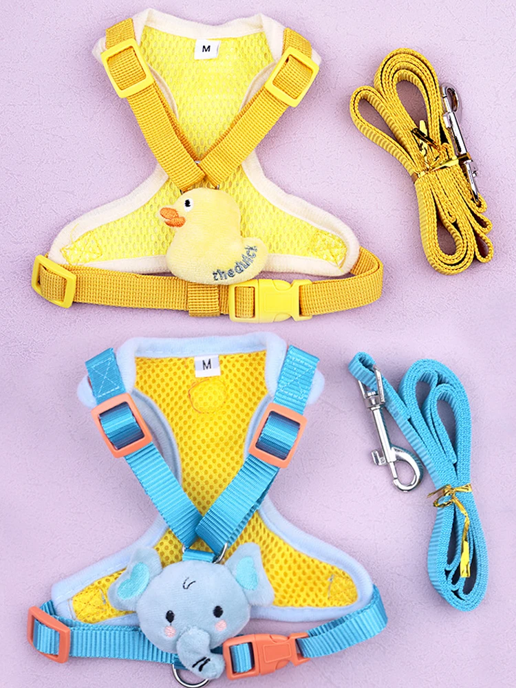 Perros y gatos, lindo pecho de tracción de dibujos animados y espalda, transpirable y cómodo para caminar con mascotas, correa de tracción, suministros para mascotas